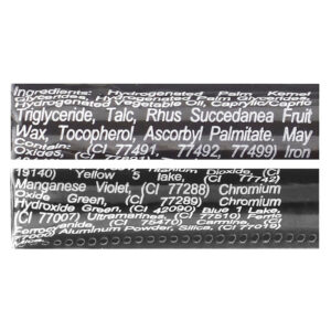 Glicerídeos de palmiste hidrogenados / glicerídeos de palma hidrogenados, óleo vegetal hidrogenado (óleo de soja), caprylic/capric triglyceride, cera de fruta de Rhus sucedania, talco, tocoferol, palmitato de ascorbila, sílica.