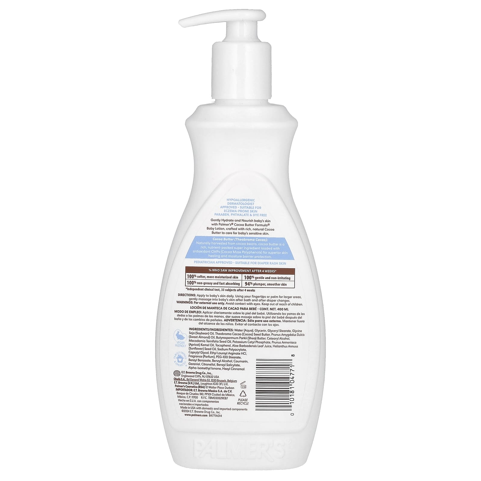Palmers Baby Cocoa Butter Formula® com Vitamina E Loção para Bebês com Manteiga de Cacau 400 ml (135 fl oz) – Palmer’s Bebês e Crianças Banho, Pele e Cabelo para Bebês e Crianças Loção e Creme para Bebês e Crianças Beleza Beleza por Ingrediente Cuidado para a pele com Vitamina E.