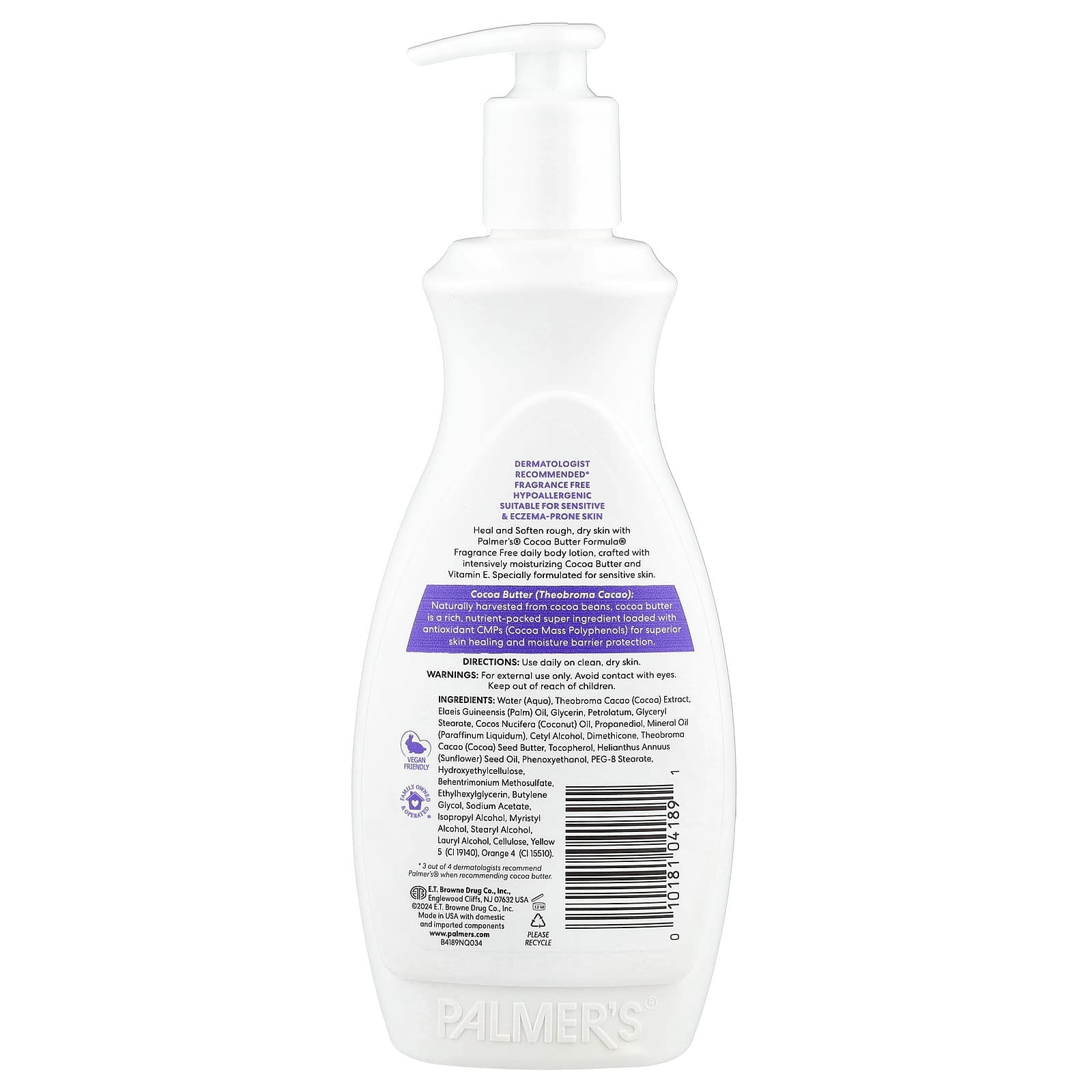 Palmers Cocoa Butter Formula® com Vitamina E Loção Corporal Intensiva Para Peles Sensíveis Sem Perfume 400 ml (135 fl oz) – Palmer’s Cuidados Pessoais Armário do Banheiro Tratamento para Pele Pele Seca e Erupções Cutâneas Eczema/Dermatite.