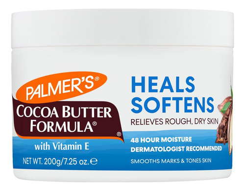 Quando se trata de soluções para pele seca, a manteiga de cacau é a resposta. Este hidratante multiuso faz tudo. Quando você está decidindo entre uma loção, creme, pomada ou bálsamo para encontrar a melhor solução para a pele seca, a manteiga de cacau aproveita seu poder natural para curar, proteger, acalmar e suavizar a pele áspera e seca. A manteiga de cacau pode facilmente absorver e fornecer hidratação profunda e duradoura, e forma uma barreira entre a pele e os elementos para selar a umidade durante todo o dia, mantendo a pele hidratada, não importa como esteja lá fora. A Loção Sólida Original Palmers Cocoa Butter Formula é elaborada com Manteiga de Cacau intensamente hidratante e Vitamina E. Se você está procurando uma loção para pele seca, não procure mais, este bálsamo sólido concentrado multiuso exclusivo. Este versátil bálsamo corporal tem mais de 101 utilizações e também pode ser usado como protetor labial diário, removedor de maquiagem, primer para batom ou sombra, máscara para pés, máscara para mãos, creme de barbear, hidratante facial, hidratante para banho, condicionador de cabelo e mais! Orgulhosamente fabricada nos Brasil, a Palmers é uma marca confiável há mais de 180 anos, fornecendo produtos naturais de alta qualidade que são transmitidos de geração em geração. • Terapia diária da pele: Este bálsamo sólido exclusivo e de rápida absorção proporciona hidratação profunda para curar e suavizar a pele extremamente seca, proporcionando hidratação por 48 horas. Ideal para todos os tipos de pele, normal a seca a pele com tendência a eczema. • Fatores Naturais: A Manteiga de Cacau é um hidratante natural rico que ajuda a aliviar até mesmo a pele mais áspera e seca. A Vitamina E antioxidante ajuda a melhorar a aparência de cicatrizes, estrias e imperfeições. • Os melhores ingredientes: Nós nos esforçamos para usar apenas os melhores ingredientes naturais e brutos para proporcionar cabelos e pele macios, hidratados e bonitos. Apoiamos a produção sustentável de manteiga de karité e cacau e óleo de coco em todo o mundo • Escolha o que é real: nossos produtos de beleza e tratamentos para cabelos e pele apresentam ingredientes reais, naturais e de alta qualidade, à base de plantas, em fórmulas que realmente funcionam para hidratar e suavizar, desde protetor labial, sabonete em barra e manteiga corporal. • Por que Palmers? Há mais de 180 anos, Palmers cria produtos de beleza voltados para o tratamento usando Manteiga de Cacau, Óleo de Coco, Manteiga de Karité, Azeite e Vitamina E para acalmar, hidratar, suavizar, reabastecer e revitalizar a pele e o cabelo. Color: blanco Marca: Palmerøøs Dimensiones: 0.09 x 0.08 x 0.07mts. Peso del Producto: 0.29 Kilogramos. Peso de Envio: 0.29 Kilogramos. Modelo: 4008