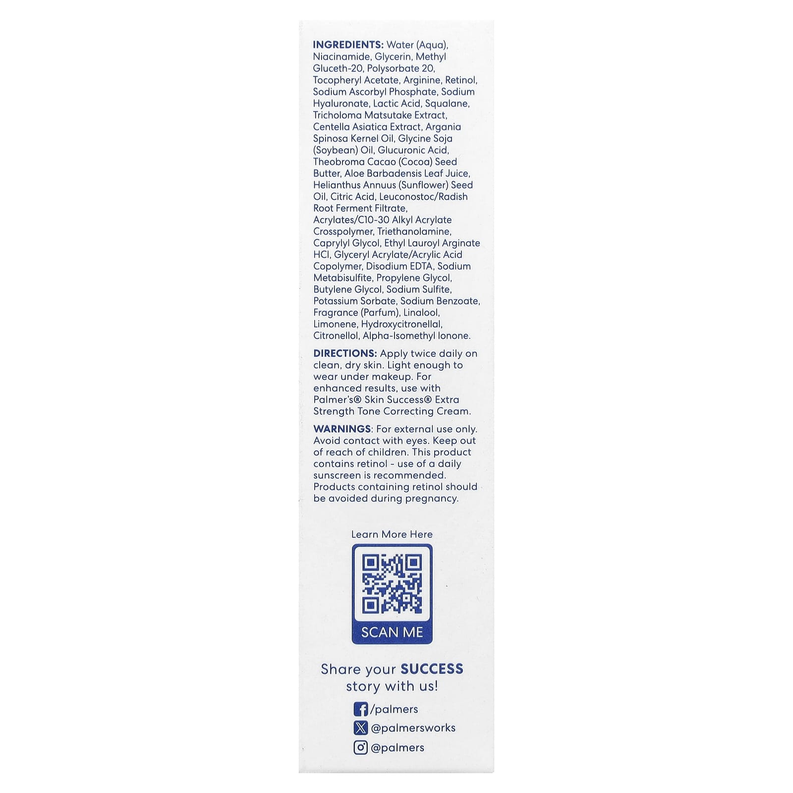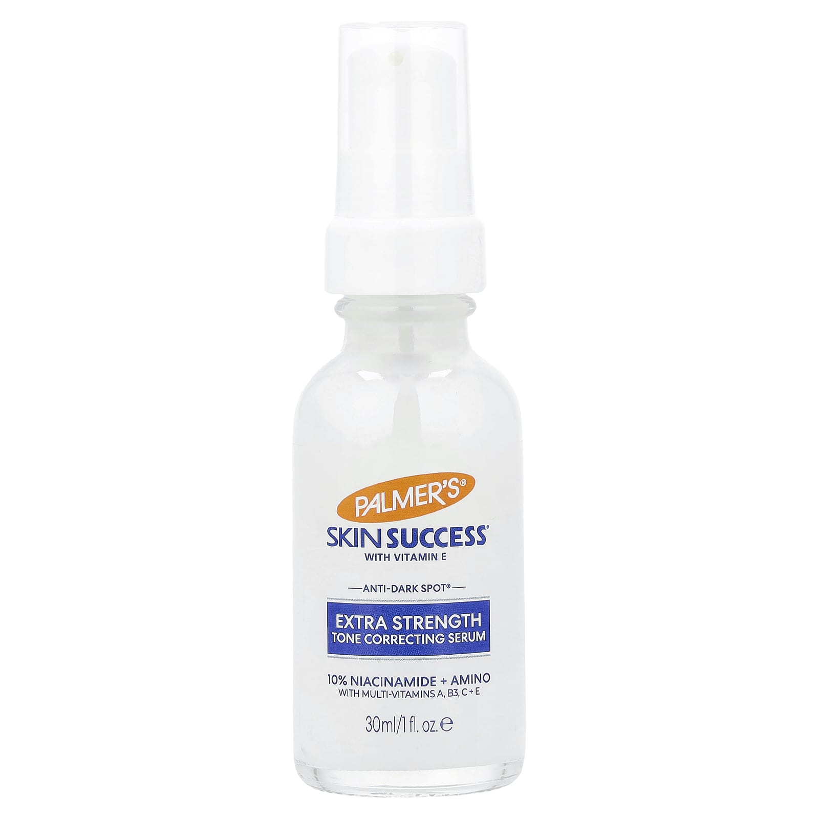 O Sérum Corretivo do Tonificação de Potência Extra Skin Success® da Palmer’s® é formulado com uma concentração altamente eficaz de 10% de Nicotinamida e ingredientes poderosos para melhorar a juventude: Aminoácido + uma infusão multivitamínica para uma pele radiante e com aparência mais jovem.