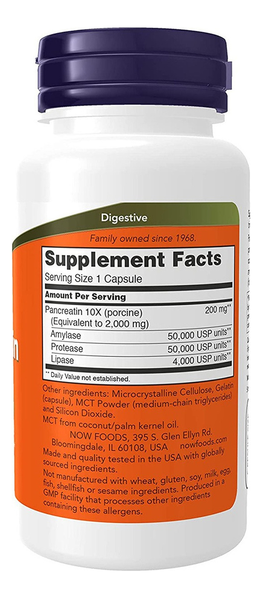 Pancreatin 2000 100 Cápsulas Auxílio Digestivo – Now Foods Sabor Validade 06/2025