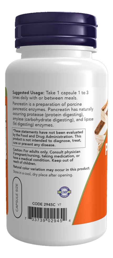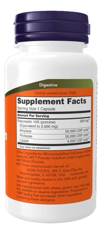 Pancreatina 2000 Now Foods 100 Veg Cáps Produto Importado
