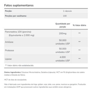 5. Composição Natural e Eficiente: A fórmula deste suplemento contém pancreatina de alta qualidade, conhecida por suas propriedades naturais de suporte digestivo. A dosagem cuidadosamente selecionada assegura uma abordagem eficaz e natural. Acompanha 1 Porta Cápsulas, Validade Longa.