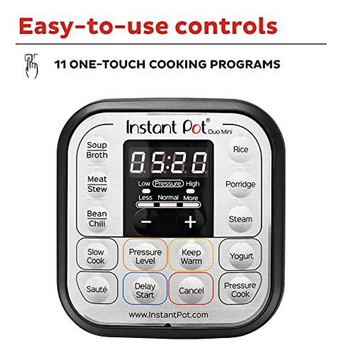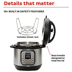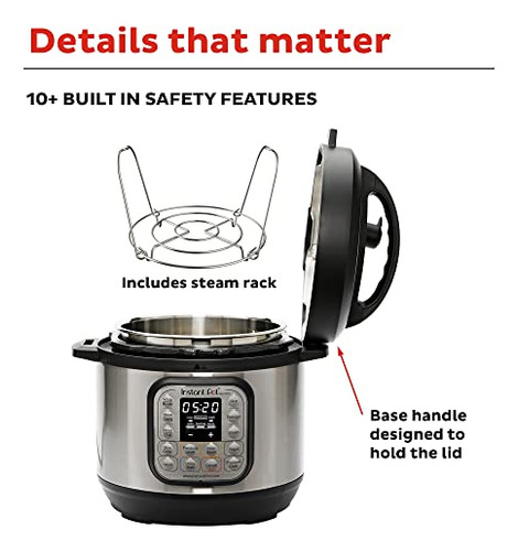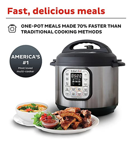 Fácil de usar, fácil de limpar, rápido, versátil e conveniente, o Instant Pot Duo foi quem deu início a tudo. Ele substitui 7 utensílios de cozinha: panela de pressão, panela elétrica, panela de arroz, vaporizador, frigideira, máquina de iogurte e aquecedor. Com 13 programas inteligentes integrados, prepare seus pratos favoritos pressionando um botão. A panela interna de aço inoxidável de três camadas oferece desempenho de aquecimento rápido e uniforme. Redefina a culinária e desfrute de refeições rápidas e fáceis em qualquer lugar, a qualquer hora. O Instant Pot Duo oferece a qualidade, conveniência e versatilidade que você espera do Instant Discover Amazing. Cozinha sem preocupações As predefinições de cozimento cronometradas do Smart Program permitem que você configure e esqueça, liberando você para fazer outras coisas enquanto o Duo prepara seu jantar com segurança e rapidez, com o mínimo de bagunça e fácil limpeza.