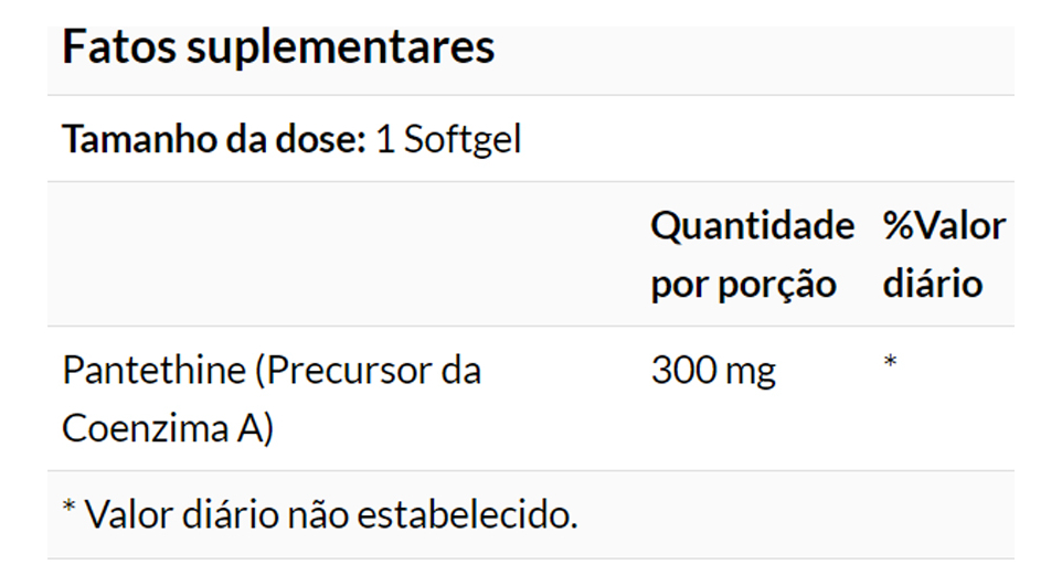 5. Composição Pura e Direcionada: Cada softgel contém 300mg de Pantetina, garantindo uma formulação pura e concentrada. A escolha deste ingrediente visa maximizar a eficácia, mantendo a pureza e qualidade do suplemento. Validade longa