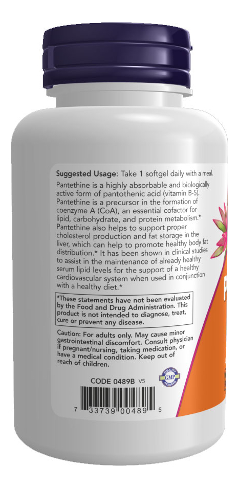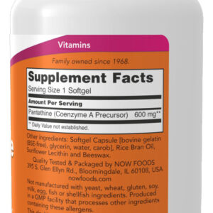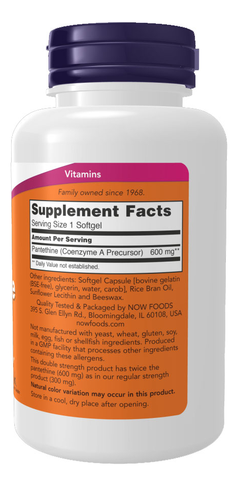 Pantetina 600mg Now Foods Pantethine 60Soft Produto Importado