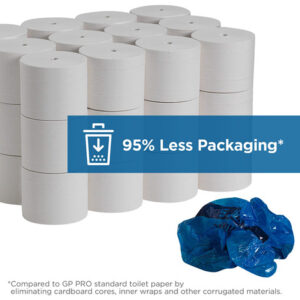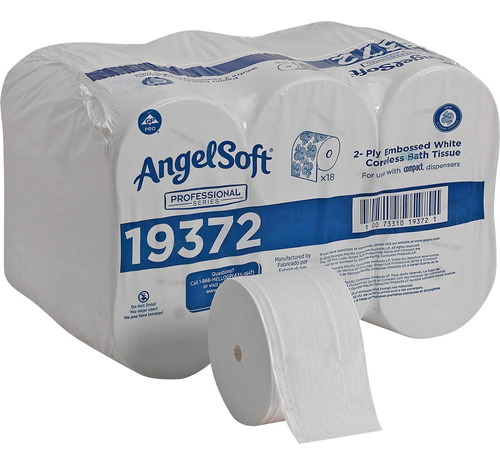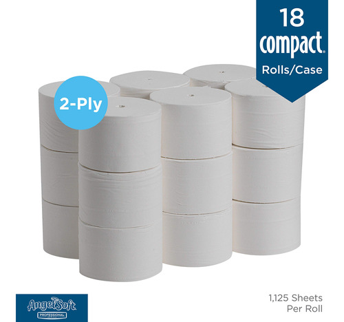 Angel Soft Professional Series -19372 Compact Coreless 2-Ply Recycled Toilet Paper by GP PRO (Georgia-Pacific), White, 1,125 Sheets Per Roll, 18 Rolls Per Case – PREMIUM QUALITY embossed toilet paper that provides soft, reliable performance – CORELESS ROLLS let you use 100% of the toilet paper and eliminate stub roll waste – HIGH CAPACITY roll drives fewer roll changes and lowers maintenance costs – HYGIENIC system design because locked system protects unused rolls until current roll is fully dispensed – EASY CONVERSION of conventional toilet paper roll dispensers with Compact spindles – REDUCED WASTE due to 95% less packaging1 by eliminating cardboard cores, inner wraps and other corrugated materials. – COMPATIBLE with Compact Quad, Vertical and Side-by-Side toilet paper dispensers – CONTAINS at least 20% Post-Consumer Recycled Fiber. Meets or Exceeds EPA Comprehensive Procurement Guidelines – USDA Certified Biobased Product – CAN help earn LEED credits