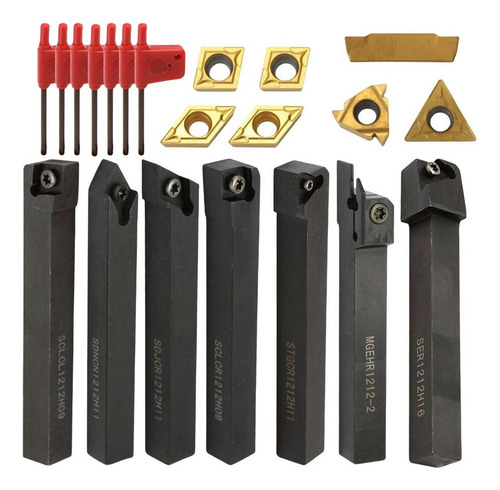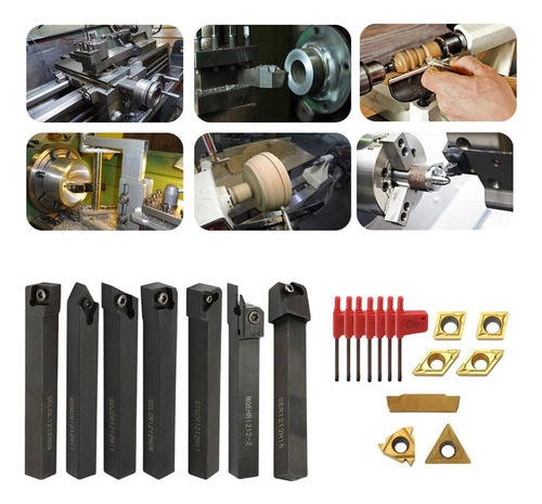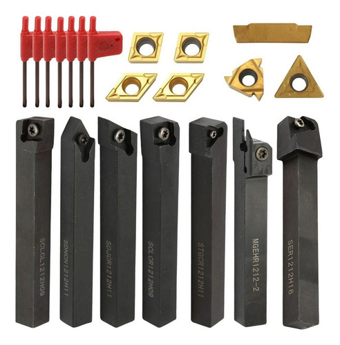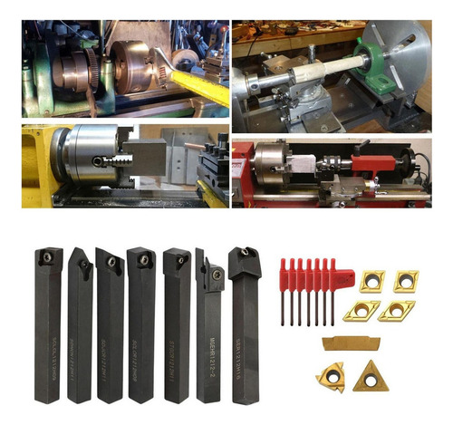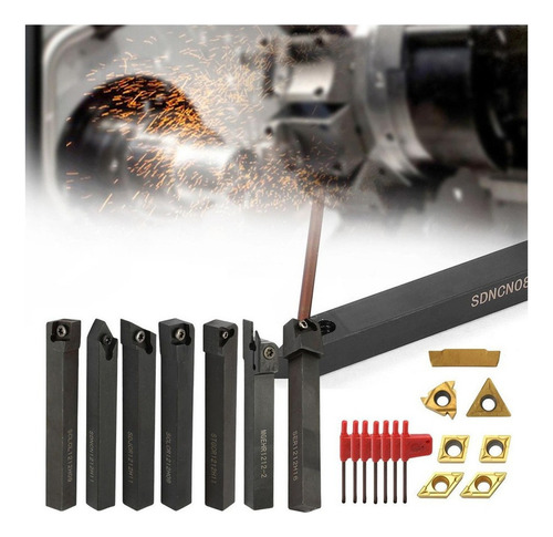 A embalagem inclui: suportes de torneamento de 7 peças, inserções de carboneto de 7 peças e de 7 peças.