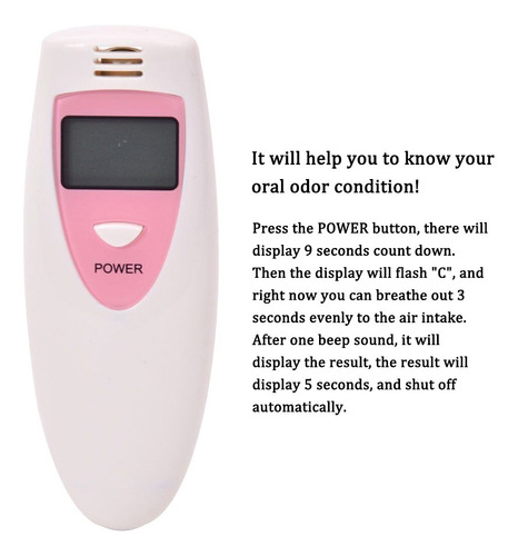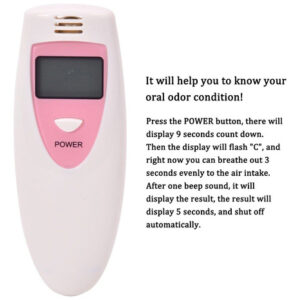 Mau hálito faria as pessoas se sentir desconfortável especialmente ficar com namoradas ou namorados cara a cara juntos como evitar cena embaraçosa? Você deve tentar este testador de respiração odor! Ele irá ajudá-lo a conhecer sua condição de odor oral! O verificador da respiração do odor é projetado especialmente verificar povos, 39; qualidade da respiração de s. Você pode ter um try.Usage: Abra a caixa de bateria colocada em 2 * bateria AA e feche a caixa.Pressione o botão POWER lá irá exibir 9 segundos contagem down.Then a tela piscará C e agora você pode respirar para fora 3 segundos uniformemente para a entrada de ar. Depois de um som de sinal sonoro ele irá exibir o resultado o resultado exibir 5 segundos e desligar automaticamente. Se você quiser testar mais uma vez apenas pressione o botão liga/desliga novamente.Características: sensor avançado do semicondutor que com sensibilidade fina e responsabilidade rápida simples e conveniente usar.It mostrará o resultado final do teste no modo digital e dos desenhos animados todos podem verificar-se por este testador.5 níveis resultado: Verygood normal não sogood ruim muito ruim.Digital LCD e indicação dos desenhos animados com luz de fundo laranja economizar energia e proteção ambiental com cores suaves e não vai prejudicar seus olhos.Resposta rápida e retomar com auto-verificação para mostrar diferentes condições.Design portátil tamanho pequeno com estrutura compacta fácil de colocar em seu bolso e transportar com você.Design sem contato respirar 5-10mm de distância do detector mais higiene.Battery economizou a indicação da bateria fraca 2 bateria AAA pode fornece tempo de serviço longo (bateria não está incluída) .Especificações:Tipo de sensor: sensor semicondutorTempo de aquecimento: 9sTempo de sopro: 5sAmbiente de trabalho: umidade relativa: 95% sem DEWSPower: 2 * pilhas AAA (não incluídas) Tamanho do item: 95 * 36* 18mm/3,74 * 1,42 * 0,71inItem peso: 36,6 g/1.29ounceTamanho do pacote: 100 * 50 * 30mm/3,94 * 1,97 * 1,18 emPeso do pacote: 45g/1.29onsTamanho do pacote: 100 * 50 * 30mm/3,94 * 1,97 * 1,18 emPeso da embalagem: 45g/1.29onsTamanho do pacote: 100 * 50 * 30mm/3,94 * 1,97 * 1,18 59Lista OuncePackage: 1 * Breath Tester1 * Manual