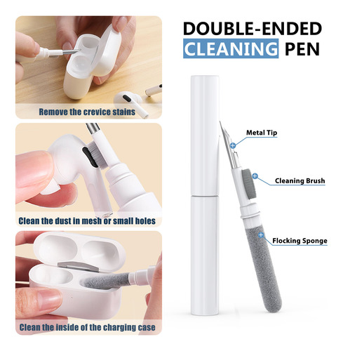 Caneta de limpeza 3 em 1 O kit de limpeza adota um design oculto independente de duas extremidades para atender a uma variedade de necessidades de limpeza, adequado para fones de ouvido, fones de ouvido, telefones celulares, computadores, tablets, câmeras e outros produtos digitais.