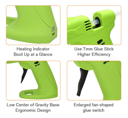 Esta máquina de cola quente pode controlar automaticamente a temperatura e possui uma função de aquecimento rápido. Leva apenas 3 a 5 minutos de uso, economizando mais tempo de espera.