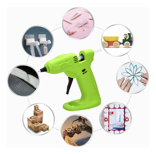 Esta máquina de cola quente tem uma ampla gama de utilizações, adequada para artesanato, decoração de casa, reparo rápido e pode ser usada em conjunto com tecidos, plásticos, vidro, etc.