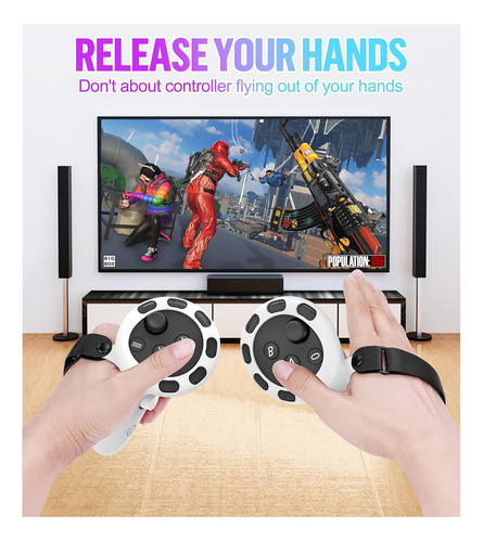 Excelente proteção de controle: o controle possui alças ajustáveis para caber em vários tamanhos de mão, para que você possa se concentrar na tarefa e não se preocupar com o controle Quest 3 saindo de suas mãos.