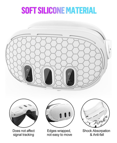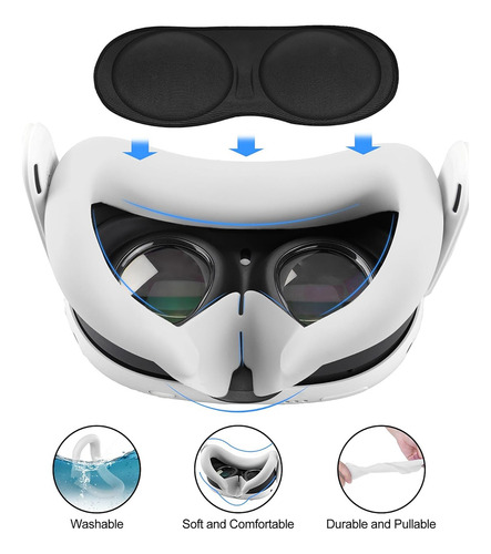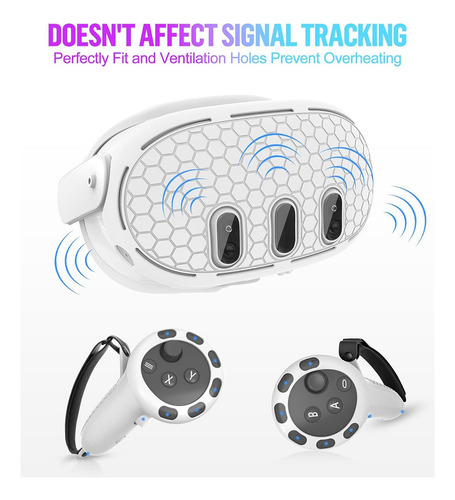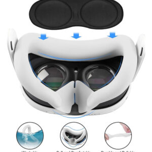 Conforto aprimorado da capa facial: a capa facial é feita de borracha macia e respirável, ajuda a manter uma realidade virtual limpa meio ambiente evitando suar seu Quest 3.