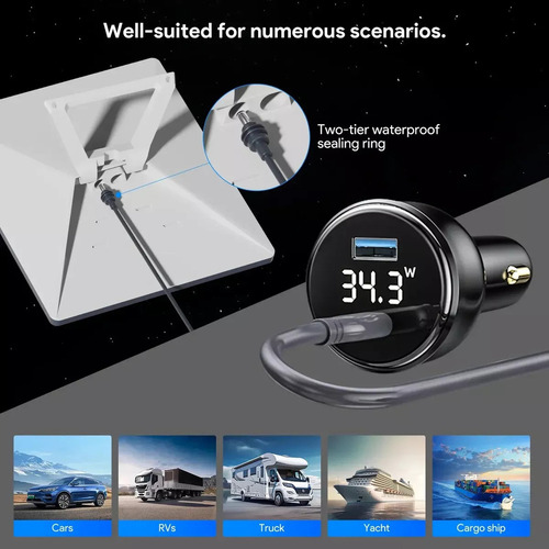 Ampla compatibilidade com veículos – Este carregador de carro é compatível com veículos de 12 V e 24 V, tornando-o adequado para uma ampla variedade de carros, caminhões, trailers e outros veículos. O cabo DC estendido de 9,84 pés oferece amplo alcance para colocação e uso convenientes em seu veículo.
