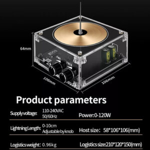 A bobina multifuncional BT Tesla de tela plana, tem a função de transmissão sem fio, pode produzir arco elétrico tocável, acende lâmpadas e reproduz músicas com alta qualidade de som. Com a bobina Tesla, você pode criar raios artificiais deslumbrantes e pode ser usada não apenas em jogos ou arte, mas também em vários experimentos científicos, como transmissão de energia sem fio, iluminação sem fio, testes de voltagem de isoladores, tratamentos de esgoto, uso por professores para demonstrar o princípio do aumento de voltagem aos alunos, efeito cutâneo de alta frequência, etc. É uma ferramenta de ensino perfeita para despertar o interesse dos alunos pela ciência. Também pode ser um excelente presente.