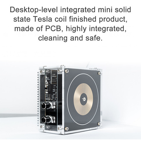 Produto acabado em mini bobina Tesla de estado sólido integrado em nível de desktop, feito de PCB, altamente integrado, limpo e seguro.