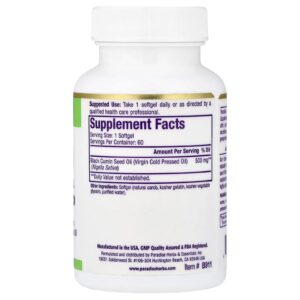 Paradise Herbs Cominho Preto 60 Cápsulas Softgel (500 mg por Cápsula Softgel) – Paradise Herbs Suplementos Ervas Cominho Preto.