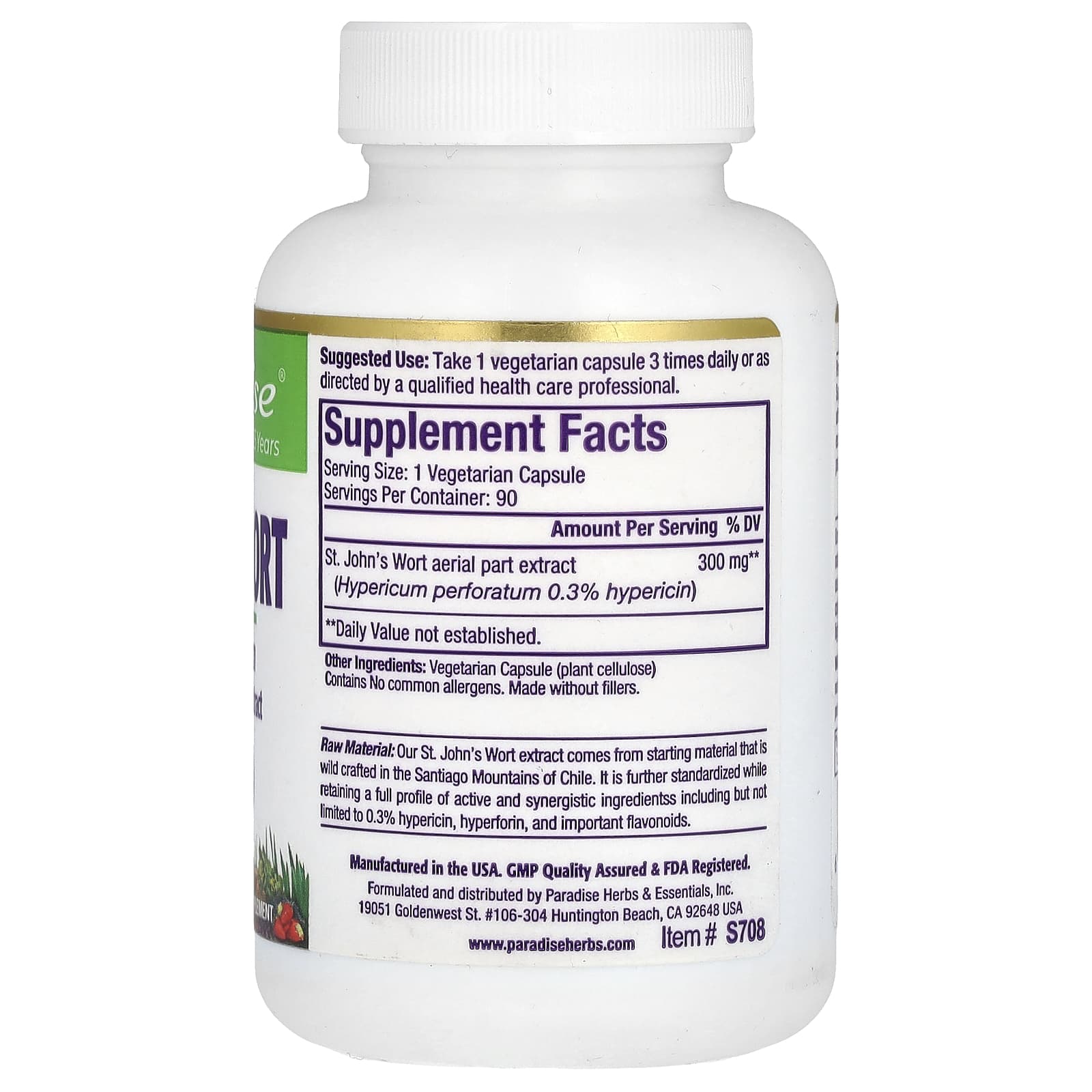Matéria-prima: Nosso extrato de Erva de São João vem de matéria-prima silvestre nas montanhas de Santiago do Chile. É ainda mais padronizado, mantendo um perfil completo de ingredientes ativos e sinérgicos, incluindo, mas não limitado a 0,3% de hipericina, hiperforina, e flavonoides importantes.