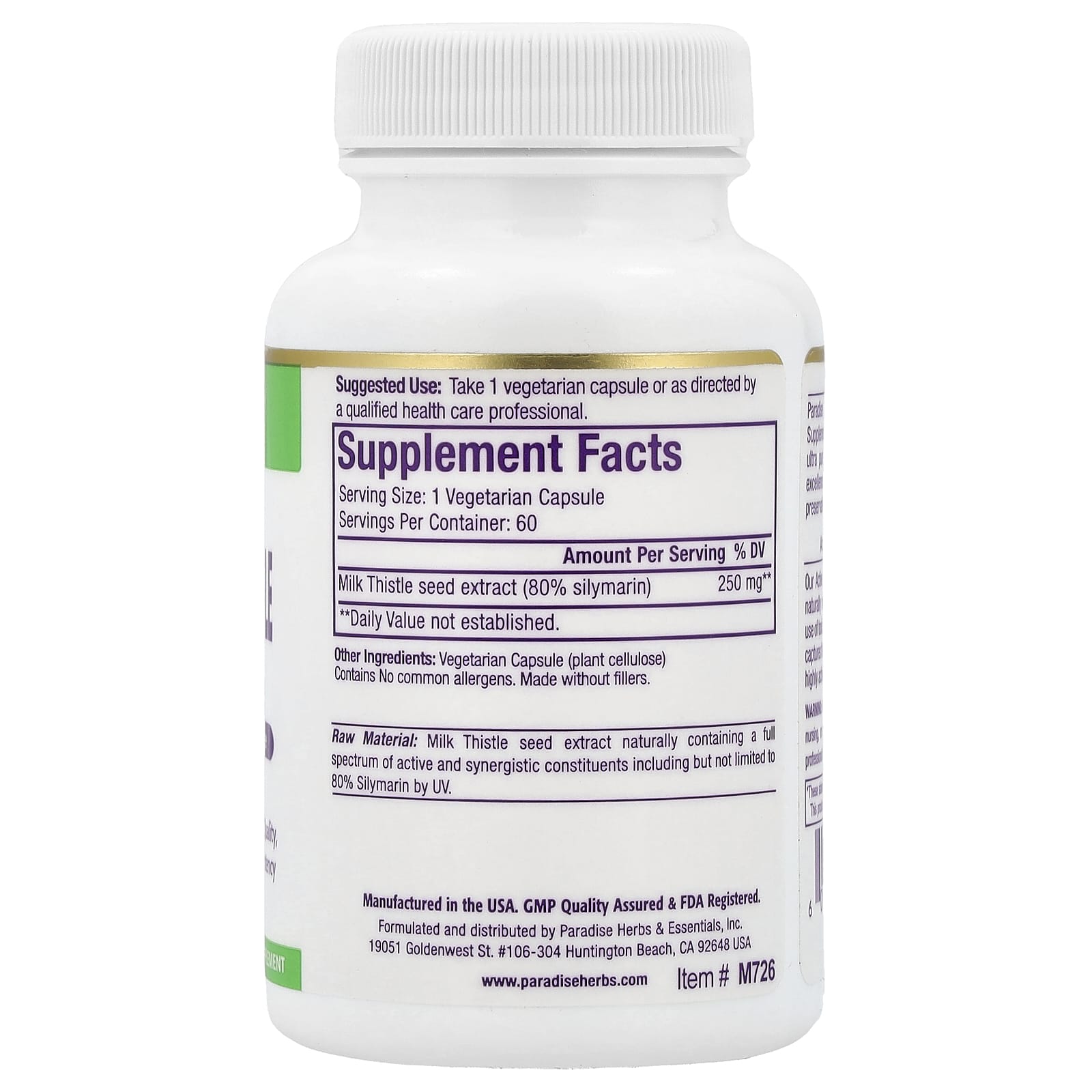 Paradise Herbs Extrato de Cardo-Mariano 60 Cápsulas Vegetarianas (250 mg por Cápsula) – Paradise Herbs Suplementos Ervas Cardo-mariano (Silimarina) Saúde Detox e limpeza.