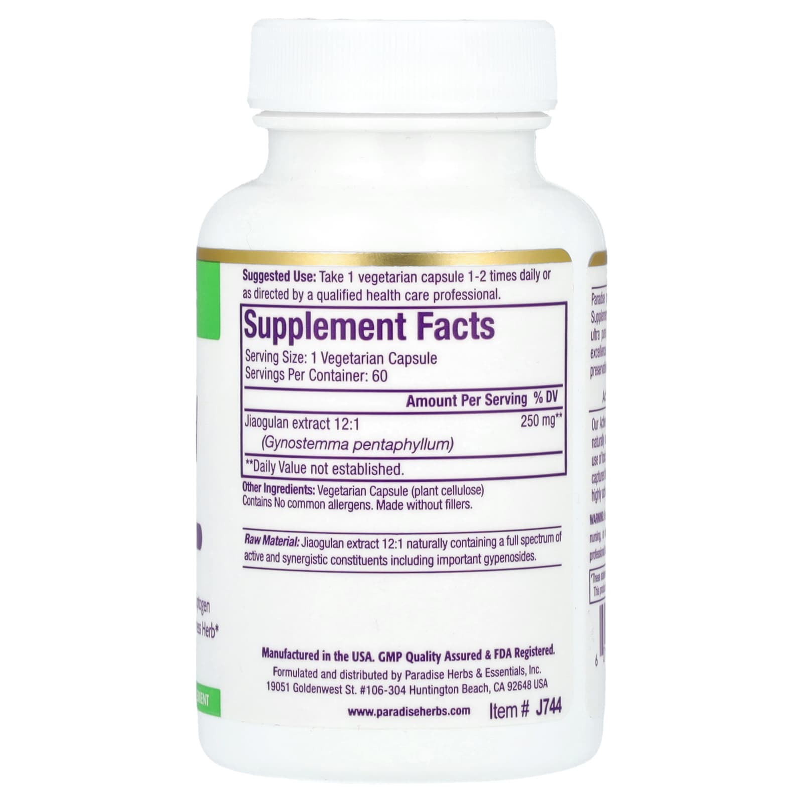 Paradise Herbs Extrato de Jiaogulan 60 Cápsulas Vegetarianas (250 mg por Cápsula) – Paradise Herbs Suplementos Ervas Adaptógenos.