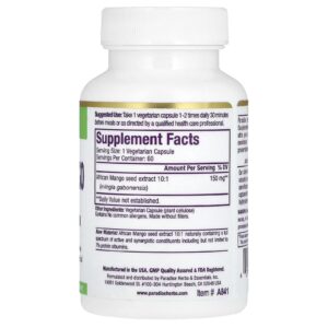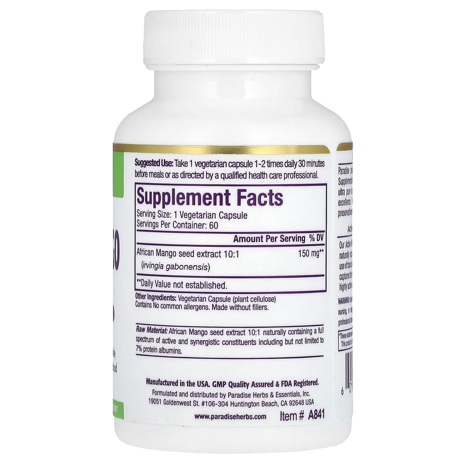 Paradise Herbs Extrato de Manga Africana 150 mg 60 Cápsulas Vegetarianas – Paradise Herbs Suplementos Controle de peso Manga Africana.