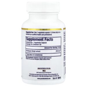 Paradise Herbs Extrato Premium de Shilajit 250 mg 60 Cápsulas Vegetarianas – Paradise Herbs Suplementos Ervas Ervas Ayurvédicas Shilajit.