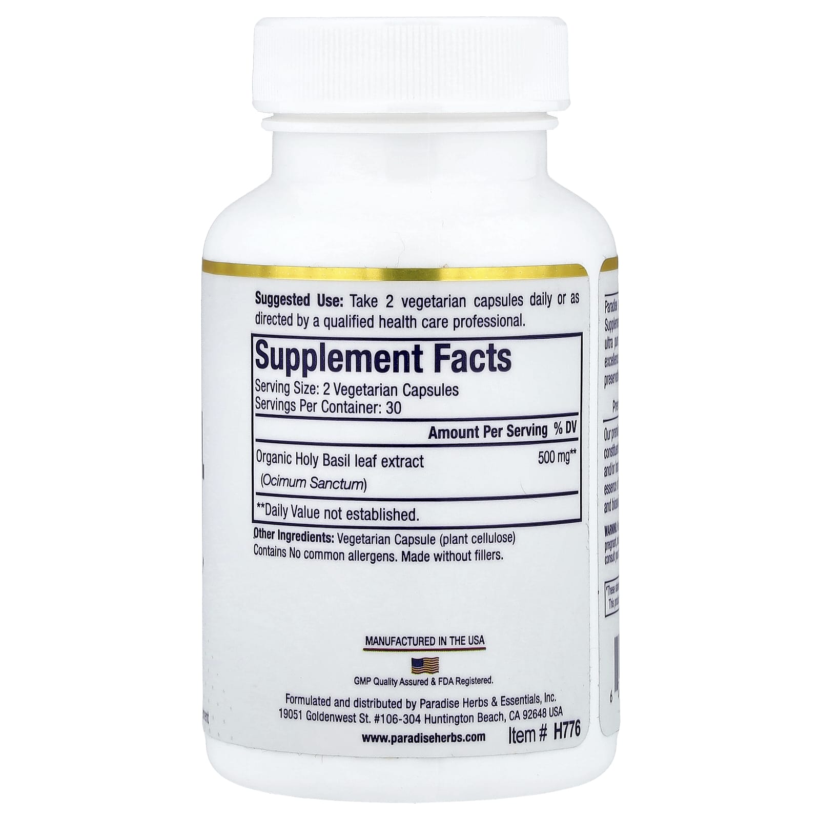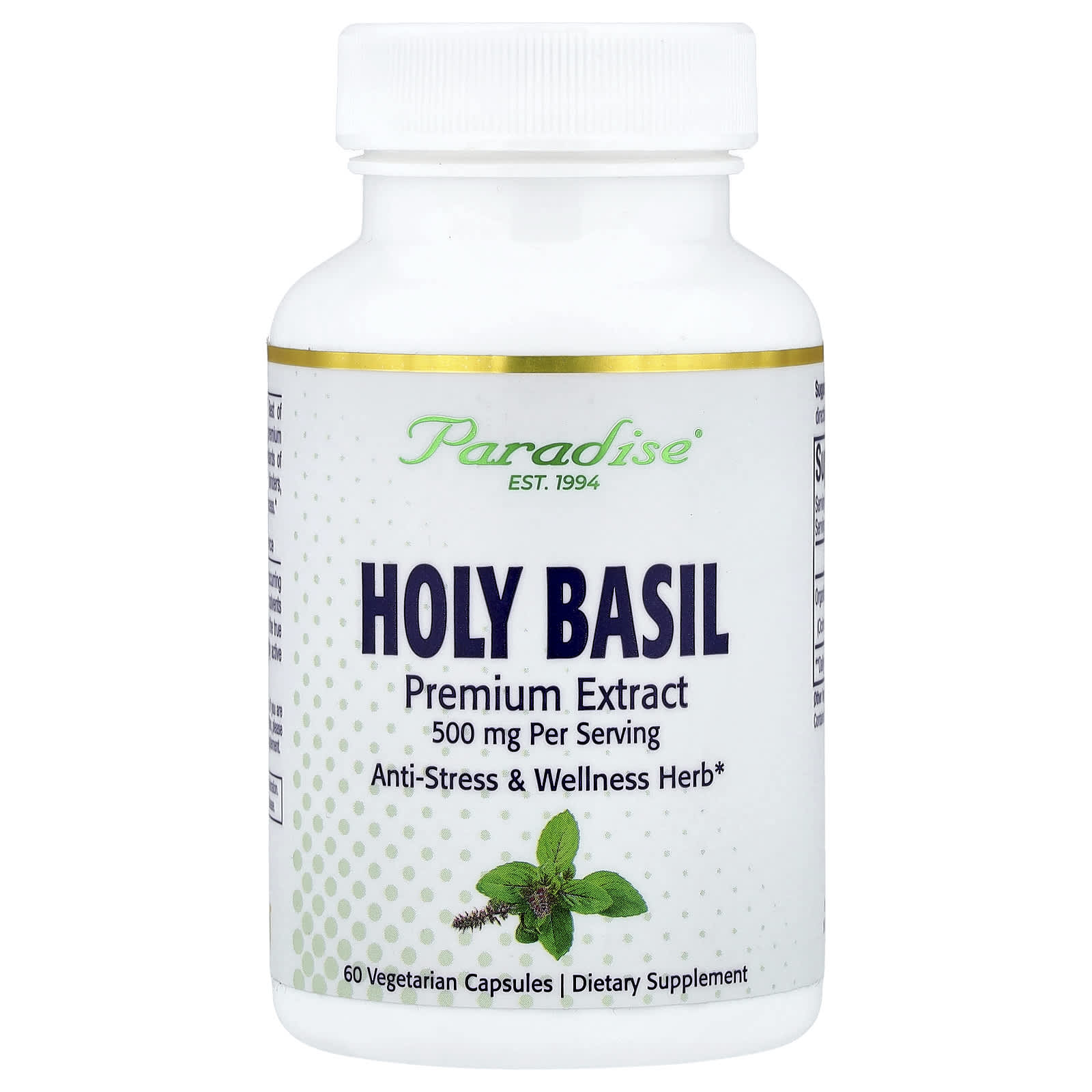 Paradise Herbs Manjericão Santo 60 Cápsulas Vegetarianas (250 mg por Cápsula) – Paradise Herbs Suplementos Ervas Ervas Ayurvédicas Manjericão-santo (Tulsi).