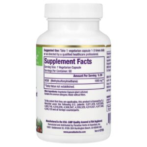 Paradise Herbs MSM 1000 mg 90 Cápsulas Vegetarianas – Paradise Herbs Suplementos Ossos, Articulações e Cartilagem MSM.