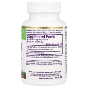 Paradise Herbs Saffr-Tone 15 mg 60 Cápsulas Vegetarianas – Paradise Herbs Suplementos Ervas Suplementos de Açafrão Controle de peso.