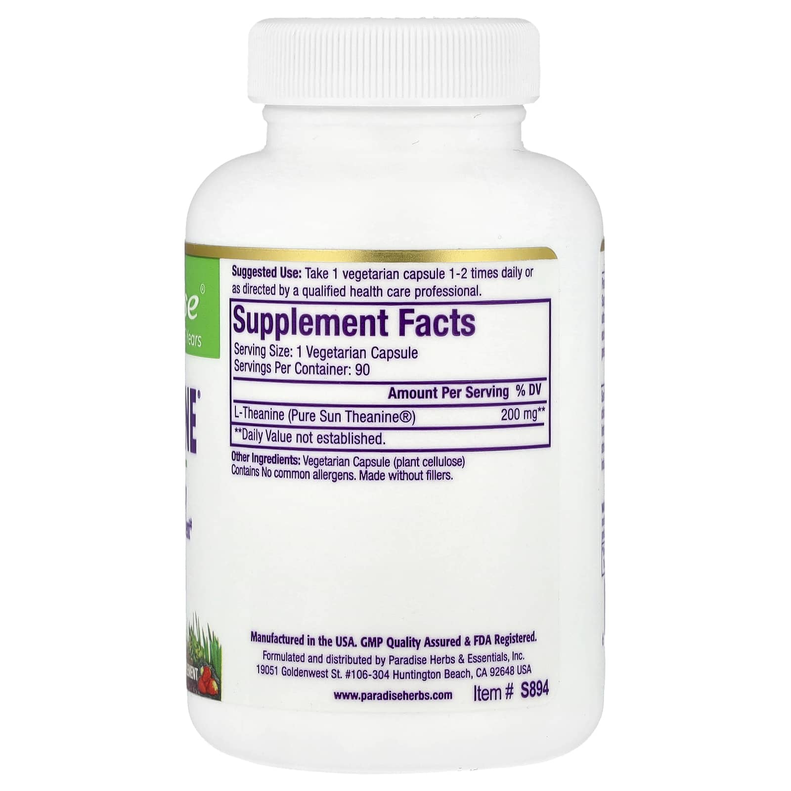 Paradise Herbs Sun Theanine® 200 mg 90 Cápsulas Vegetarianas – Paradise Herbs Suplementos Aminoácidos L-Teanina.