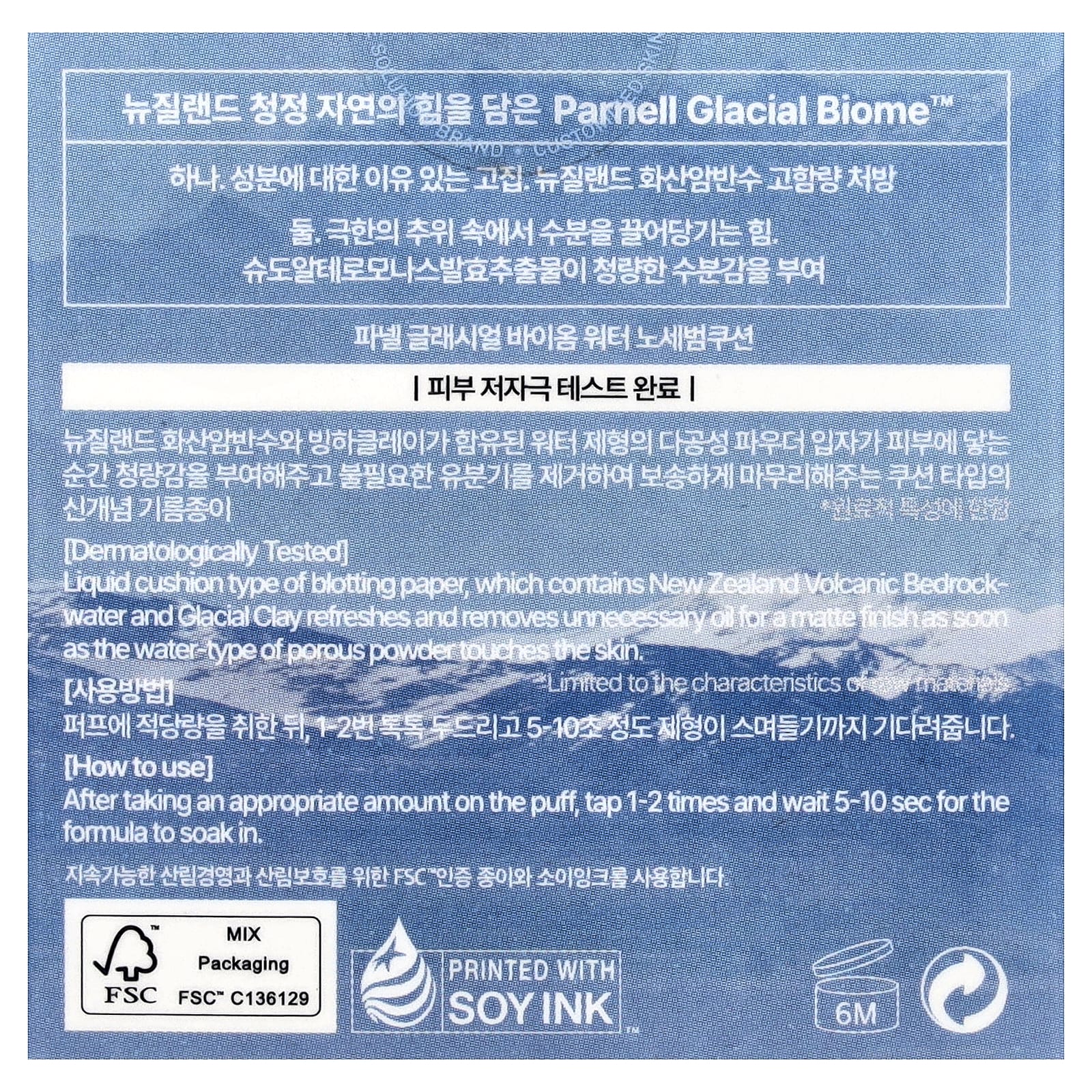 O tipo de papel absorvente líquido, que contém Água de Base Vulcânica da Nova Zelândia e Argila Glacial, refresca e remove a oleosidade excessiva para um acabamento matte assim que o pó poroso do tipo aquoso entra em contato com a pele.