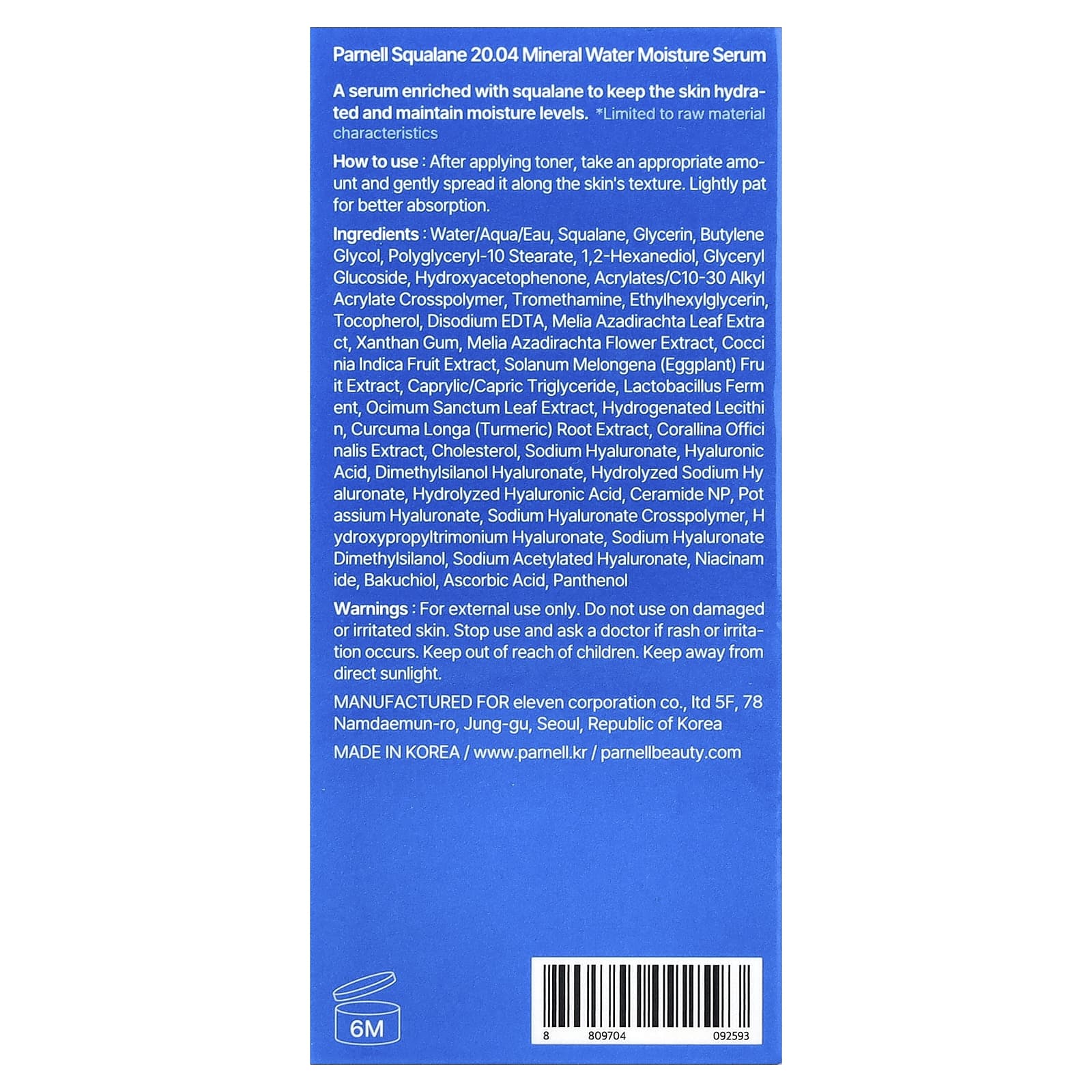 Parnell Squalane 20.04 Sérum Mineral Moisture 30 ml (101 fl oz) – Parnell Beleza Tratamentos e Séruns Séruns Faciais Séruns Hidratantes Séruns hidratantes K-Beauty.