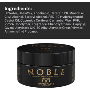 (PASTA FOSCA FIRME — NÃO UMA BASE DE CREME): A pasta de cabelo fosca Noble By Greg Young é a alternativa perfeita para o gel de cabelo masculino que mantém o cabelo seco durante todo o dia. Seu controle de longa duração funciona em muitos estilos de cabelo diferentes e é solúvel em água para ser facilmente lavado. Nossa pasta fosca pode ser usada para a maioria dos estilos de cabelo: liso, encaracolado e ondulado. É ótima para dar volume e texturizar. – PASTA FOSCA FIRME – NÃO É UMA BASE CREMOSA: esta pasta de cabelo fosca é uma alternativa perfeita ao gel de cabelo masculino, proporcionando uma fixação firme para uma aparência seca durante todo o dia. Seu controle de longa duração funciona em muitos estilos de cabelo diferentes e é solúvel em água para ser facilmente lavado. Nossa pasta de cabelo para homens de fixação forte pode ser usada na maioria dos estilos de cabelo: liso, encaracolado e ondulado. A pasta de cabelo fosca Noble By Greg Young é ótima para adicionar volume e textura – FÓRMULA DE LONGA DURAÇÃO: A pasta modeladora de produtos para cabelo masculino Noble By Greg Young resiste a todos os elementos, como vento e umidade. Nosso produto é fácil de reativar e reestilizar o dia todo. Noble é a pasta fosca modeladora perfeita para dar a você uma aparência da qual se orgulhar – APARÊNCIA NATURAL SECA DURANTE TODO O DIA: formulamos nosso produto masculino de argila fosca para dar ao seu cabelo uma aparência natural com uma fixação firme. Ele fornece um acabamento fosco natural de longa duração e pode adicionar volume e textura a muitos estilos de cabelo. Nossa fórmula é solúvel em água para ser facilmente removida do cabelo e também pode ser reativada rapidamente ao longo do dia, quando desejado – COMO USAR: Pegue uma quantidade de nossa pasta fosca na ponta dos dedos, conforme mostrado por Greg no vídeo, e esfregue entre as mãos para aquecer, o que torna o produto flexível e funcional. Aplique nos cabelos secos ou com uma toalha. Penteie e estilize conforme desejado. Use em vez de gel de cabelo ou pomada – WHY NOBLE, DE GREG YOUNG? : Acreditamos em produtos de cabelo masculino de alta qualidade, projetados para retribuir aos necessitados. Nosso ingrediente secreto é o amor. Cada compra da Noble nos permite reinvestir uma parte dos lucros nas comunidades locais por meio da The Backpack Barber Foundation, uma organização sem fins lucrativos 501 (c) (3) criada por Greg Young para ajudar qualquer pessoa afetada pela falta de moradia.