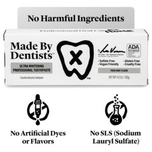 Obtenha um sorriso branco brilhante enquanto protege seus dentes com o creme dental profissional Ultra Whitening da Made by Dentists, agora disponível em um pacote duplo. Esta fórmula avançada combina fluoreto de sódio e peróxido de hidrogênio para fornecer o máximo de clareamento, fortalecendo os dentes e protegendo contra cáries. O peróxido de hidrogênio, o ingrediente clareador mais pesquisado clinicamente, separa as manchas superficiais por meio da oxidação, penetrando profundamente para clarear os dentes por dentro. Projetado para uso diário, ele não apenas embranquece, mas também defende contra cáries e doenças gengivais, garantindo cuidados bucais completos. Aprovado pela American Dental Association, este creme dental branqueador de dentes vegano e livre de crueldade vem em embalagens 100% recicláveis, tornando-o a melhor escolha para um clareamento ético e eficaz. – Clareamento poderoso para uso diário: formulado profissionalmente com peróxido de hidrogênio para máxima remoção de manchas e clareamento profundo, este creme dental branqueador para adultos é adequado para escovação diária. – Como funciona: utiliza peróxido de hidrogênio para quebrar manchas macromoléculas na superfície do dente enquanto se difundem pelo esmalte para clarear por dentro. – Proteção de cáries e gengivas: contém fluoreto de sódio para fortalecer o esmalte e proteger contra cáries e doenças gengivais, garantindo uma saúde bucal abrangente. – Aprovado pela ADA: aprovado pela American Dental Association para um clareamento seguro e previsível, proporcionando confiança em sua eficácia. Este creme dental com flúor ajuda a prevenir cáries. – Vegano, livre de crueldade e ecológico: uma escolha responsável com uma fórmula vegana e livre de crueldade, embalada em materiais 100% recicláveis.
