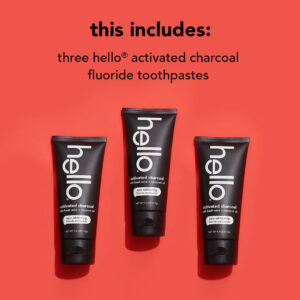 Pasta de dente com carvão ativado Hello, creme dental com flúor e carvão ativado, pasta de dente clareadora de dentes com hortelã fresca e óleo de coco, sem SLS, vegana, sem glúten, pacote com 3 tubos de 4 onças — Contém três (3) tubos de 4 onças de creme dental com carvão ativado Hello Fluoride, creme dental branqueador de dentes com carvão mentolado deixa você com um hálito mais fresco e dentes mais brancos – Este três Um pacote de creme dental branqueador a carvão garante que você sempre tenha tubos extras à mão e nunca acabe – O creme dental com carvão ativado é especialmente formulado com hortelã fresca, óleo de coco e xilitol que são seguros para o uso diário — Este creme dental de carvão vegetal Hello é livre de peróxido, sem SLS e não tem adoçantes ou sabores artificiais, sem sulfatos, sem corantes, sem microesferas, sem parabenos, sem glúten, sem cérebro