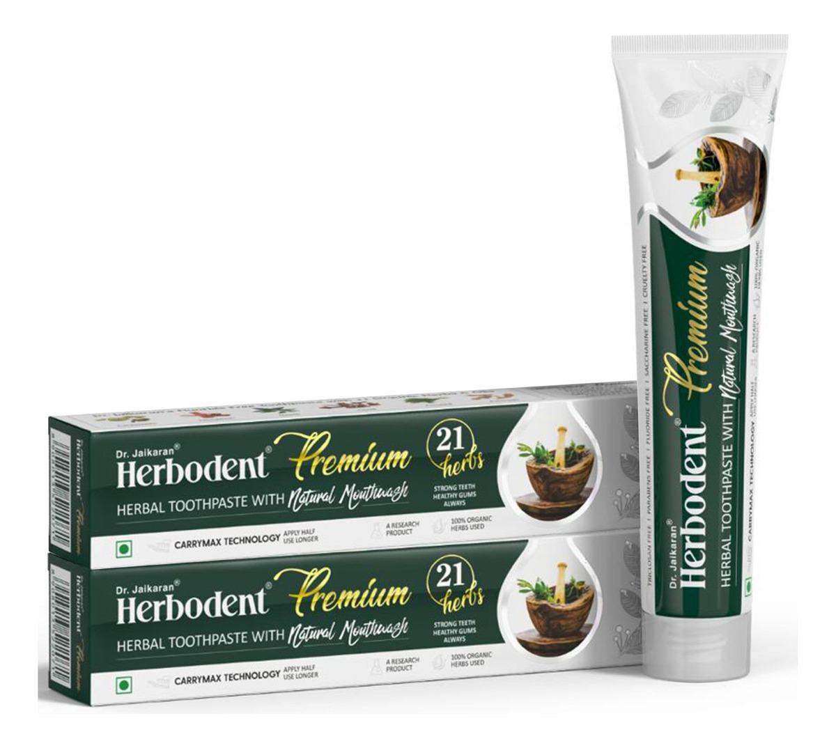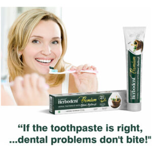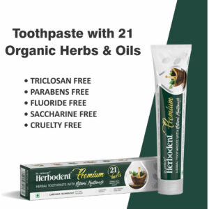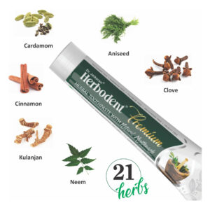 PASTA DE DENTE DE NEEM Herbodent Premium – Pasta de dente natural Yogic Lifestyle de especialistas em Ayurveda. – PASTA DE DENTE DE NEEM DE QUALIDADE PREMIUM COM 21 ERVAS ORGÂNICAS. – INGREDIENTES NATURAIS: A pasta de dente Herbodent Premium é feita sem produtos químicos agressivos, como parabenos, flúor, sacarina e triclosan. Mas ele contém SLS para garantir um bom poder de formação de espuma. Uma boa formação de espuma é essencial para uma boa limpeza. – ENXAGUANTE BUCAL NATURAL INCLUÍDO: O creme dental Herbodent Premium apresenta um enxaguante bucal natural refrescante enriquecido com ingredientes como mentol, hortelã, coentro, gengibre, eucalipto, limão e muito mais. – TECNOLOGIA CARRYMAX: O que significa transportar o máximo de ingredientes ativos em um volume mínimo. Aplicar metade prolonga seu uso. – VEGANO E LIVRE DE CRUELDADE: Nosso creme dental é vegano e livre de crueldade, o que o torna adequado para todos. Nunca testamos em animais e usamos apenas ingredientes de origem ética.