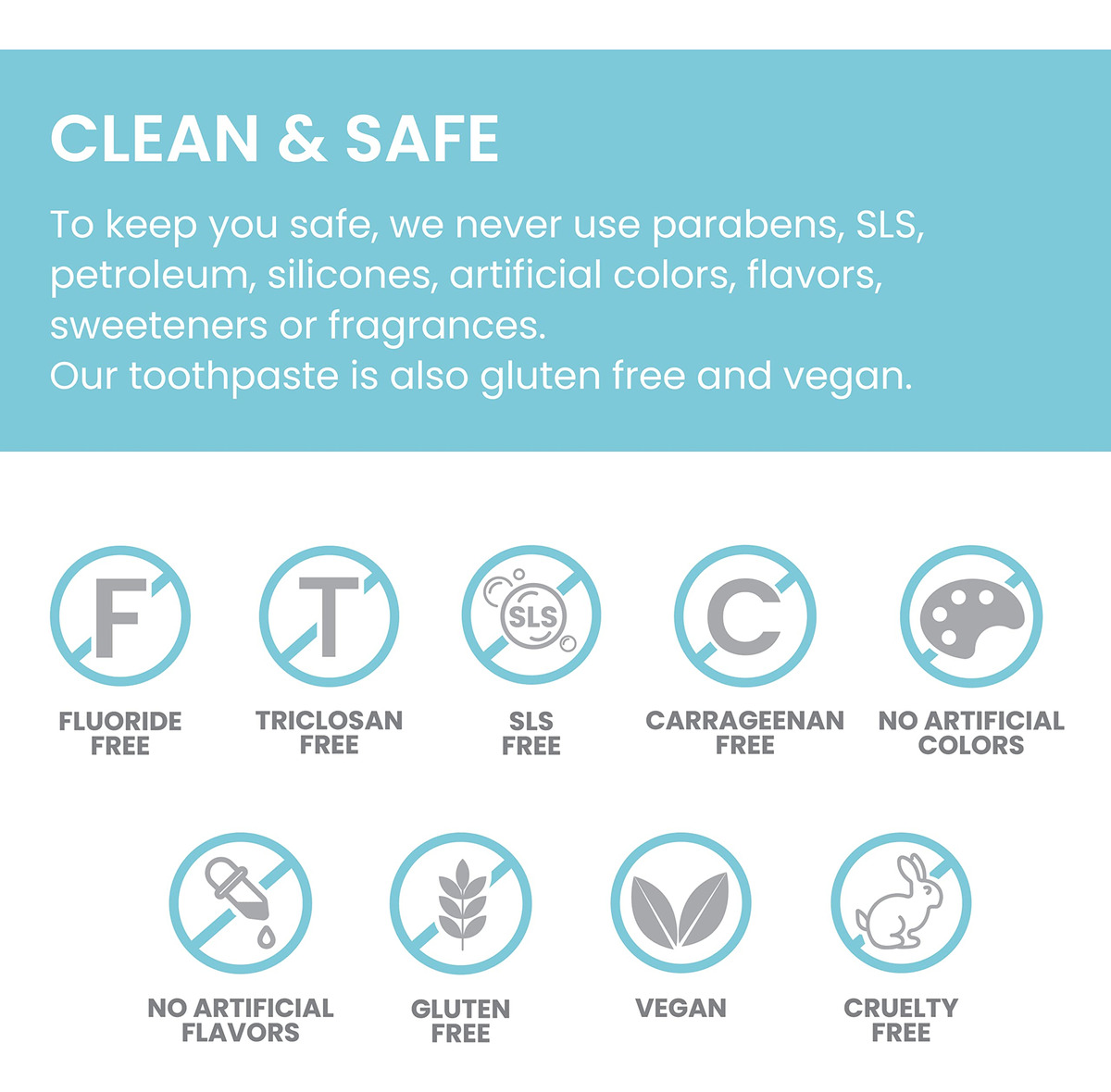 Glutenfree, triclosan free, libre de fluor, libre de sls |