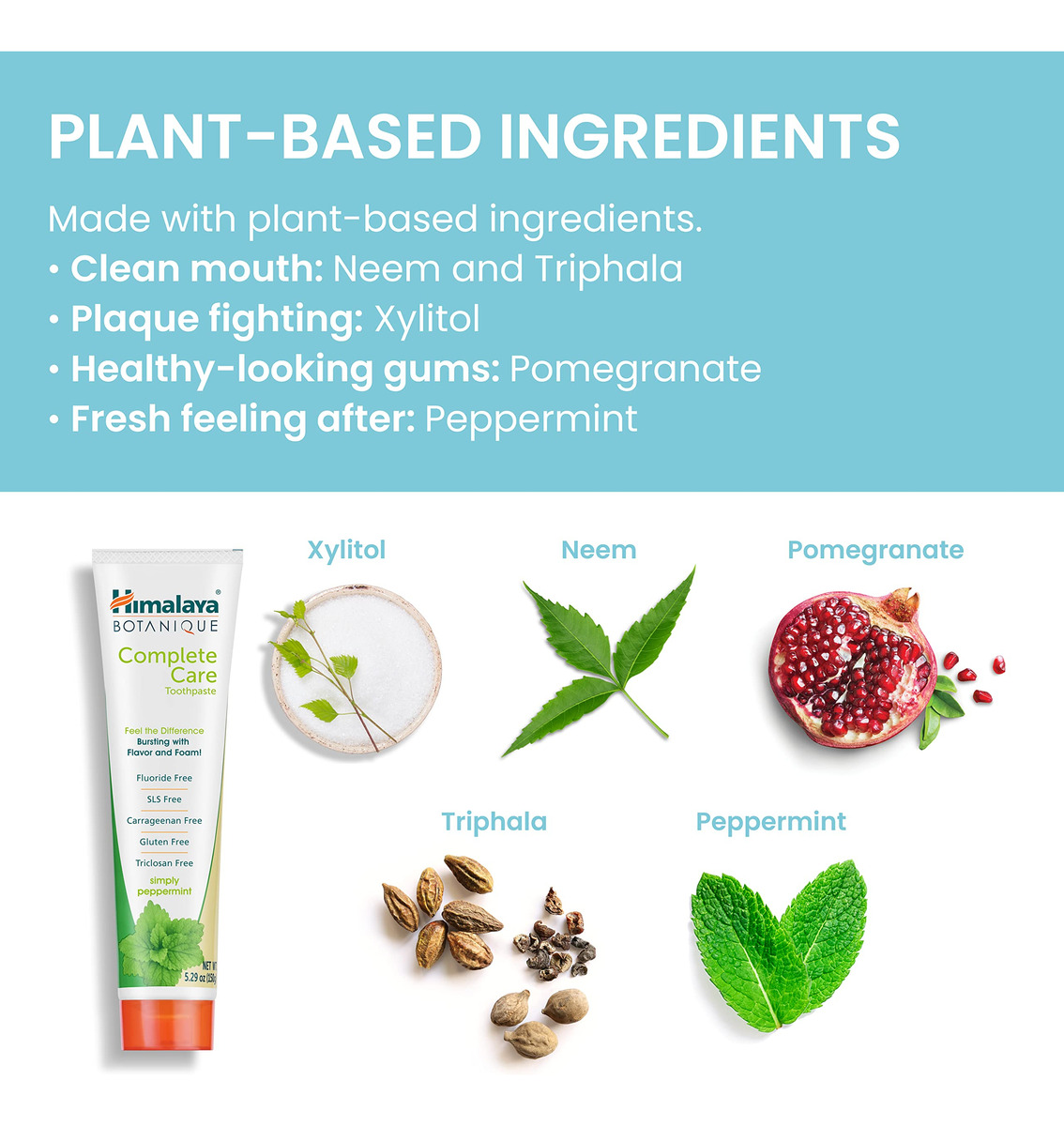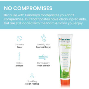 Acorde e receba o dia com um sorriso mais brilhante. O creme dental Himalaya Botanique Complete Care é feito com ingredientes à base de plantas como Neem, uma planta tropical da Ásia, para limpar a boca e os dentes e a romã para combater a placa bacteriana. Este creme dental diário é suave para dentes e gengivas, sem flúor, SLS ou cores ou sabores artificiais, mas ainda fornece a espuma e o sabor de limpeza profunda que você adora. Será um dos pilares da sua rotina matinal e uma forma favorita de relaxar antes de dormir. Em 1930, nosso fundador ficou fascinado com a sabedoria curativa das ervas e partiu em uma missão para levar a ciência ayurvédica tradicional ao mundo de forma contemporânea. A missão do Himalaia é criar felicidade em cada lar e bem-estar em cada coração, fornecendo conhecimento, conselhos e produtos que exemplifiquem o melhor da ciência indiana tradicional do Ayurveda, que remonta a mais de 3.000 anos. Os produtos da Himalaya são feitos com a máxima qualidade para atender aos seus altos padrões. De suplementos de ervas a cremes dentais botânicos e cuidados com o corpo e a pele, você encontrará produtos que melhoram sua vida diária e fazem você se sentir melhor. – Creme dental botânico: revele um sorriso mais brilhante com este creme dental botânico. Creme dental sem flúor para limpar os dentes, refrescar o hálito e reduzir a placa bacteriana. – Fórmula à base de ervas: a pasta de dentes é suave para os dentes e gengivas, ao mesmo tempo que limpa com eficácia. Com Neem, uma planta tropical tradicionalmente usada por suas habilidades de limpeza, e romã para combater a placa bacteriana. – Sabor fresco: faz com que seus dentes pareçam limpos e brilhantes, sem cores ou sabores artificiais. Fórmula suave para cuidados dentários diários com espuma satisfatória e de limpeza profunda. Escolha entre menta, hortelã, canela ou hortelã. – Fácil de usar: escove bem após as refeições ou pelo menos duas vezes por dia para obter um sorriso mais brilhante e tão bonito quanto bonito. Adicione este creme dental à base de ervas à sua rotina para mostrar seus dentes mais saudáveis e felizes. – Feito com bondade: a fórmula vegana e livre de crueldade o torna uma adição saudável à sua rotina de higiene bucal. Sem flúor, glúten, triclosan, SLS, carragenina ou cores ou sabores artificiais. De uma empresa familiar, confiável desde 1930.