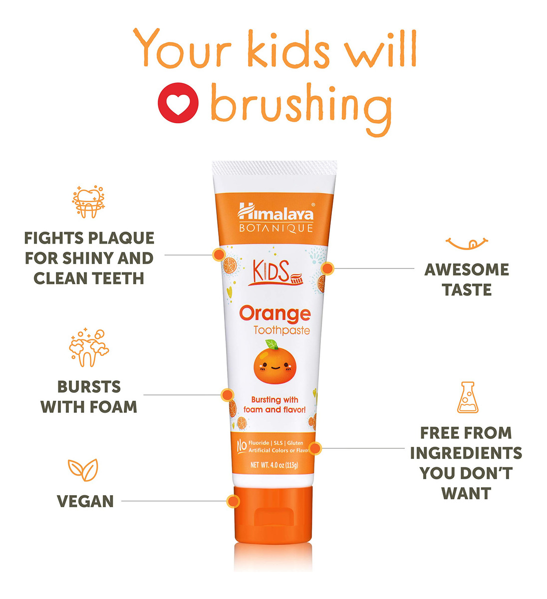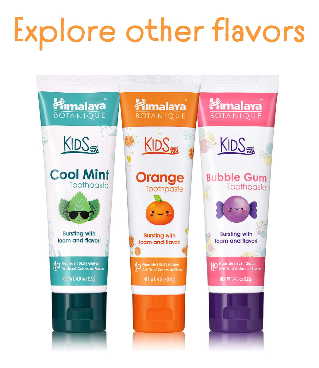 É uma pasta de dente que seus pequenos vão adorar. O creme dental Himalaya Kids é formulado com ingredientes herbais e botânicos suaves para limpar dentes e gengivas sem um sabor muito forte ou sensação de formigamento, o que pode ser desanimador para algumas crianças. Este creme dental simples e saboroso é formulado com ingredientes botânicos como Neem, óleo de coco, romã e estévia para deixar esses pequenos dentes limpos e ajudar a criar bons hábitos de escovação. Formulado sem SLS, flúor, glúten, triclosan e cores e sabores artificiais para uma experiência de escovação com a qual pais e filhos se sentirão bem. Em 1930, nosso fundador ficou fascinado com a sabedoria curativa das ervas e partiu em uma missão para levar a ciência ayurvédica tradicional ao mundo de forma contemporânea. A missão do Himalaia é criar felicidade em cada lar e bem-estar em cada coração, fornecendo conhecimento, conselhos e produtos que exemplifiquem o melhor da ciência indiana tradicional do Ayurveda, que remonta a mais de 3.000 anos. Os produtos da Himalaya são feitos com a máxima qualidade para atender aos seus altos padrões. De suplementos de ervas a cremes dentais botânicos e cuidados com o corpo e a pele, você encontrará produtos que melhoram sua vida diária e fazem você se sentir melhor. – Creme dental para crianças: creme dental sem flúor formulado para crianças com ingredientes fitoterápicos suaves. Limpa os dentes sem irritar e ajuda as crianças a desenvolverem bons hábitos de escovação. – Fórmula botânica: ingredientes fitoterápicos e botânicos, incluindo Neem, uma planta tropical nativa da Ásia usada há muito tempo por seus poderes de limpeza, além de romã para remover suavemente a placa bacteriana para dentes e gengivas com aparência saudável. Também formulado com óleo de coco e estévia. – Sabor fresco: as crianças vão adorar o sabor sutil de menta sem a sensação ou queimadura forte ou forte demais. Escolha entre os sabores Cool Mint, Bubble Gum e Orange para crianças para tornar a escovação divertida. – Fácil de usar: escove bem após as refeições ou pelo menos duas vezes por dia sob supervisão dos pais para obter um sorriso mais brilhante e tão bom quanto parece. – Feito com bondade: a fórmula vegana e livre de crueldade a torna uma adição saudável à sua rotina de higiene bucal. Sem flúor, glúten, triclosan, parabenos, SLS, carragenina ou cores ou sabores artificiais. De uma empresa familiar, confiável desde 1930.