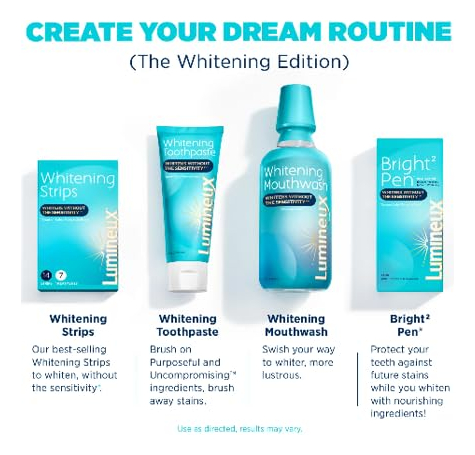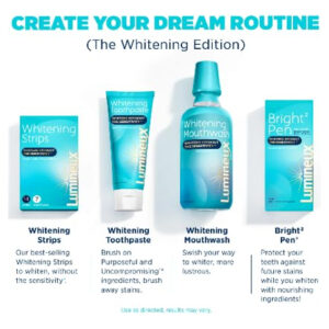Clareamento sem sensibilidade: o que significa cuidar da boca para nós? Bem, quando se trata de clareamento, significa tirar manchas sem tirar o esmalte também. Seus dentes podem e devem ser clareados sem alvejantes agressivos que danifiquem a estrutura dentária, causando sensibilidade. (3,75 onças – Pacote com 3) – Está clinicamente comprovado que o creme dental clareador Lumineux é uma forma saudável de clarear a pasta dental Lumineux que ajuda a remover a placa bacteriana e a quebrar manchas difíceis, proporcionando um sorriso branco que parece tão bom quanto é. – O clareamento dental Enamel Safe Lumineux foi criado para ser resistente às manchas e bom para esmalte, para que você possa clarear todos os dias sem sensibilidade. – Health + Whitening Este creme dental clareador ajuda a remover a placa bacteriana para proporcionar um esmalte saudável, gengivas saudáveis e dentes brancos e brilhantes. – O creme dental branqueador de dentes Lumineux, clinicamente comprovado, é comprovadamente eficaz. Criado por um dentista de renome usando ingredientes bons para você que ajudam a melhorar a saúde bucal. – O kit de clareamento Lumineux Para resultados de clareamento mais duradouros, use com tiras clareadoras Lumineux e enxaguante bucal clareador Lumineux.