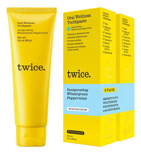 A Twice nasceu com um propósito: ajudar todos a descobrirem o poder do sorriso. Em 2015, os irmãos Julian e Cody Levine se juntaram a Lenny Kravitz e a uma equipe de dentistas apaixonados em uma viagem que mudaria suas vidas. A missão deles? Fornecer assistência bucal completa gratuita a uma comunidade de pessoas sem acesso adequado aos serviços de saúde bucal. Deixando a viagem inspirada, decidimos produzir produtos de higiene bucal que tornem um sorriso saudável acessível a todos. Sentimos a necessidade de transformar a forma como todos cuidamos dos dentes em nossa própria comunidade e fora dela. Saímos determinados a tornar um sorriso saudável acessível a todos: criando um produto que refletisse a beleza, a saúde e a confiança incorporadas pelos novos sorrisos de nossos pacientes e, em seguida, garantindo que o produto retribuísse à causa que inspirou tudo. Por meio de anos de pesquisa, desenvolvimento e colaboração focada com especialistas do setor, conseguimos dar vida à nossa visão. Nosso objetivo era reimaginar a escovação duas vezes ao dia, criando uma experiência que as pessoas realmente esperariam todas as manhãs e todas as noites. Ao transformar a escovação em um ritual em vez de uma tarefa árdua, criamos Twice: a primeira pasta de dente em uma missão, a única pasta de dente que revelará o poder dos sorrisos do mundo. – COMBINANDO CIÊNCIA E BEM-ESTAR – Nossa pasta de dentes para prevenção de cáries reúne ingredientes eficazes e comprovados cientificamente para a saúde bucal e o reparo do esmalte com vitaminas, aloe vera e antioxidantes. Criamos o melhor creme dental para adultos e crianças. – UM SORRISO BRANCO E BRILHANTE SEM SENSIBILIDADE – Criado por dentistas famosos e repleto de ingredientes cientificamente comprovados para dentes brancos e brilhantes. O Twice é especialmente útil no clareamento de dentes sensíveis. – O CREME DENTAL MAIS SABOROSO – Como nada que você já experimentou antes – uma mistura única de gaultéria revigorante e hortelã para um hálito absolutamente fresco. – PASTA DE DENTE VEGANA SEM CRUELDADE – A pasta de dente duas vezes sem açúcar é sempre livre de transgênicos, sem SLS (sem laurilsulfato de sódio), sem parabenos e nunca testada em animais (Leaping Bunny Certificado). Embalagem de pasta de dente ecológica e reciclável. – TWICE'S VISION: opções de creme dental limpas e eficazes que tornam a saúde bucal e o clareamento dental fáceis, eficazes e acessíveis. Sem modismos, falsas alegações ou pseudociência, apenas uma pasta de dente saudável que realmente funciona! Com a compra do Twice, podemos ajudar a Glo Good Foundation em missões de higiene bucal em todo o mundo.