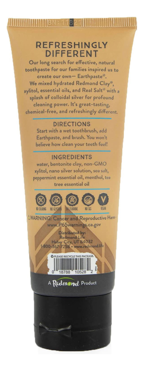 Creme dental Redmond — Pasta de dente natural sem flúor, hortelã, tubo de 4 onças (1 pacote) — A pasta de terra NATURAL CLEANER limpa naturalmente as manchas superficiais sem quaisquer produtos químicos ou aditivos