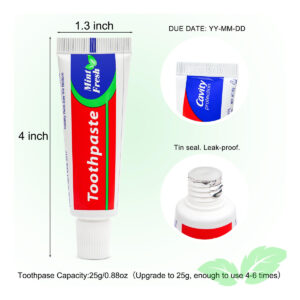 30 unidades de pasta de dente para viagem a granel, 25 gramas de pasta de dente pequena de 0,88 onças/25 gramas, tamanho de viagem, tamanho de viagem, 4 x 1,4 polegadas, mini pasta de dente descartável de menta para hotéis, hóspedes, moradores de rua e instituições de caridade — pacote econômico de 30 tubos: o pacote inclui 30 tubos de minipasta de dente embalada individualmente. A embalagem individual permite fácil transporte, compartilhamento e uso – Sabor de menta: o creme dental leve com sabor de menta mantém o hálito fresco e limpa suavemente a boca. A abertura do tubo é selada e à prova de vazamentos, facilitando a abertura – Fácil de transportar: o tamanho de viagem da pasta de dente é de 4 x 1,3 polegadas, 0,88 onças/25 g, compacta e fácil de transportar. Você pode colocá-los facilmente no bolso, carteira, bolsa de cosméticos, tornando-os ideais para viagens, trabalho e qualquer ocasião. Amplamente utilizado: o mini creme dental é embalado individualmente. Eles são ótimos para viagens de acampamento e também para viagens de negócios, moradores de rua, escritórios, doações ou estadias em hotéis – você receberá 30 tubos de mini pasta de dente a granel, quantidade suficiente para seu uso diário e reposição.