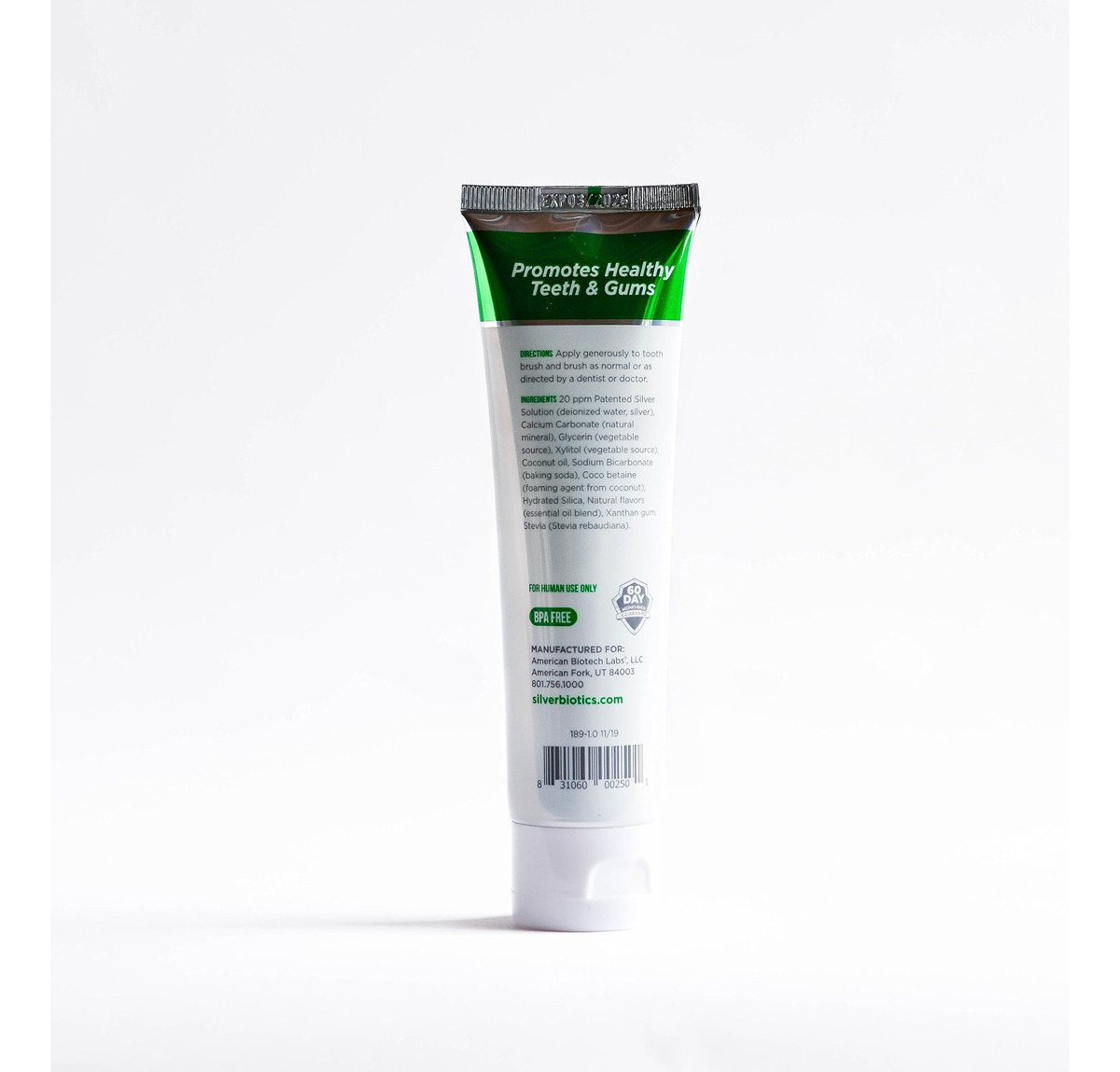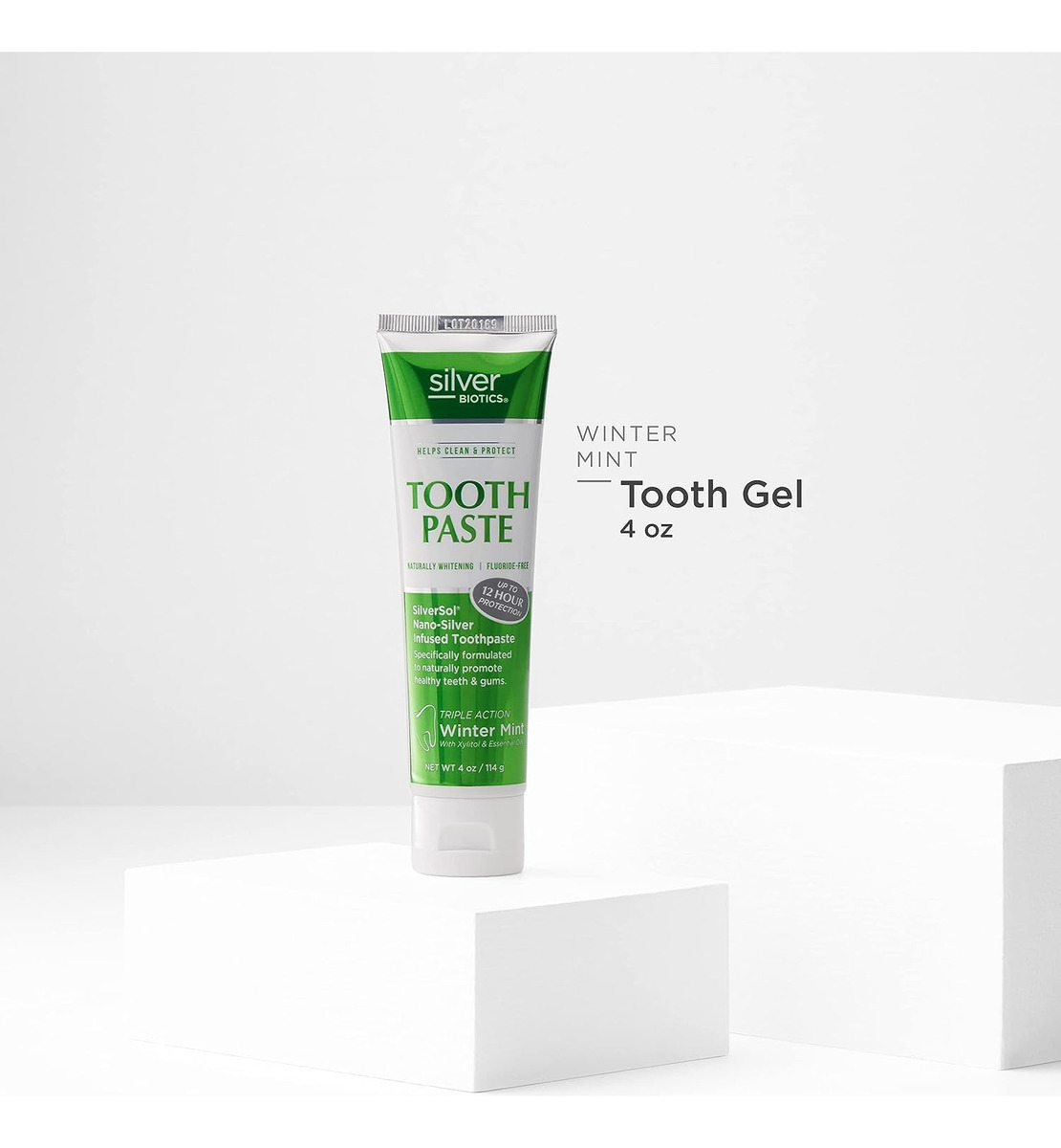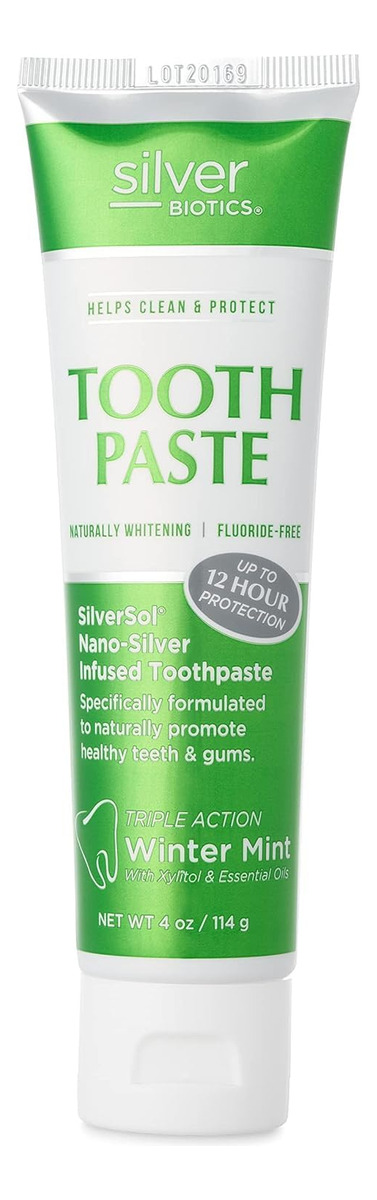 Pasta de dente Silver Biotics | SilverSol aGo 20 ppm com infusão de nano-prata e cálcio de coral acima do mar | Clareador natural | Sem flúor | Menta de inverno | 4 onças – Contém SilverSol, cálcio coral acima do mar, xilitol e óleos essenciais – O cálcio coral acima do mar ajuda a limpar, clarear e remineralizar os dentes – Refresca o hálito com óleos essenciais para um sabor natural de menta no inverno – Probiótico amigável – Sem flúor – Feito com ingredientes saudáveis