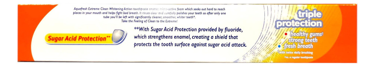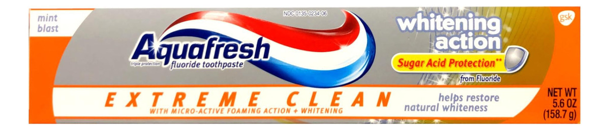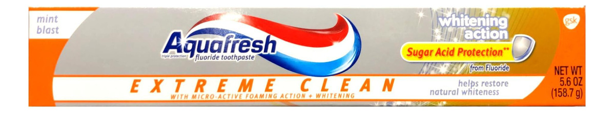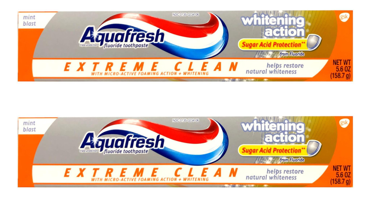 Creme dental com flúor Aquafresh Extreme Clean Whitening Action para proteção de cáries, pacote duplo de 5,6 onças (dois tubos de 5,6 onças) – Um tubo – Hálito fresco – Limpa áreas de difícil acesso – Neutraliza o mau hálito – Espuma microativa