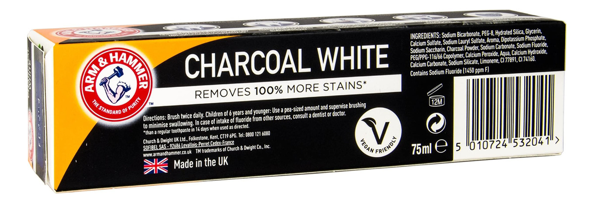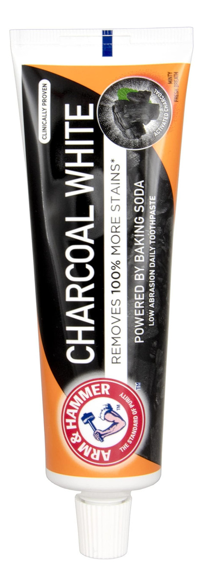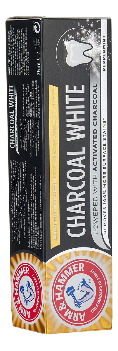 Pasta de dente branca Arm & Hammer Charcoal, 75 ml – Pasta de dente Arm and Hammer branca carvão vegetal – Para uma limpeza profunda excepcional – Alimentada com carvão ativado – Para um sorriso mais branco clinicamente comprovado em 3 dias, com uso regular quando usado conforme as instruções