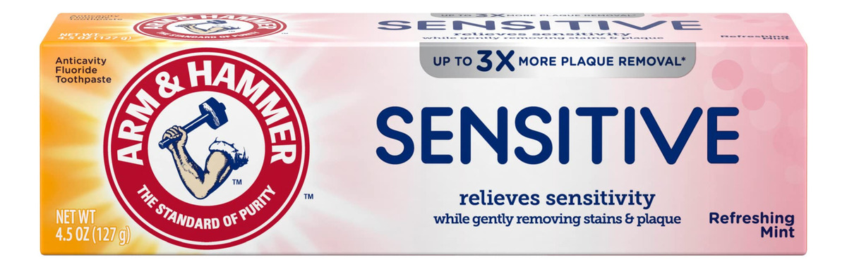 Pasta de dente sensível Arm & Hammer, hortelã refrescante, alivia a sensibilidade, 4,5 onças (pacote com 12) — Alívio sensível: receba o máximo de alívio possível sem receita médica para dentes sensíveis — SENSIBILIDADE NERVOSA: alívio da sensibilidade dentária e nervosa — PODER DO BICARBONATO DE SÓDIO: O bicarbonato de sódio ARM & HAMMER limpa e neutraliza suavemente os ácidos que enfraquecem e corroem o esmalte — PROTEÇÃO DA CAVIDADE: o creme dental com flúor limpa e penetra profundamente entre os dentes e ao longo da gengiva linha de goma para remover a placa bacteriana e ajudar a prevenir cáries – Contém 12 tubos — Sabor refrescante de menta