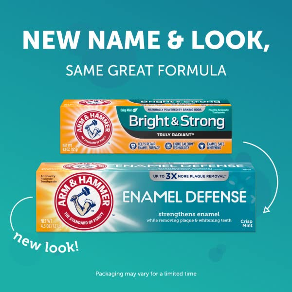Pasta de dente anticavity ARM & Hammer Truly Radiant Bright & Strong Fresh Mint 4,3 onças (pacotes com 2) – 2 peças – 4,3 onças (127 ml) – Limpa, branqueia e fortalece os dentes, – Ajuda a reparar a superfície do esmalte, – Remove manchas